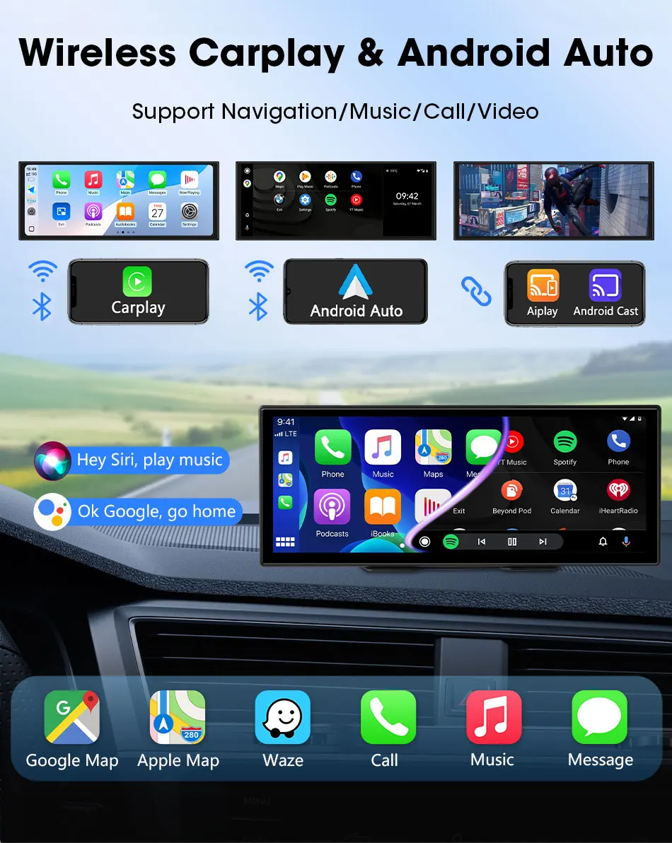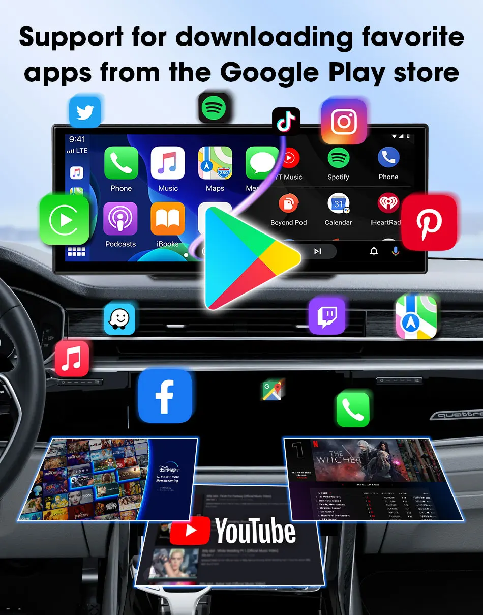 (1) Split Screen:CarPlay/Android Auto+App,App+App;Such as Map+Youtube,Map+Music,Map+Video,CarPlay+Youtube, etc;