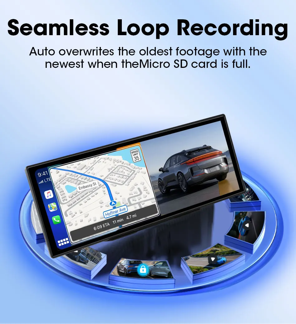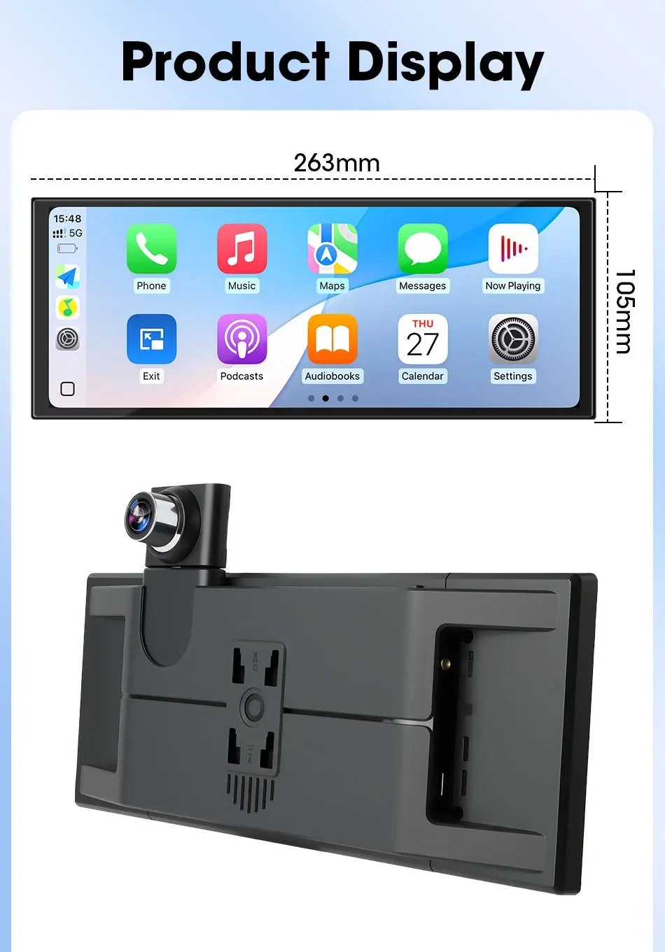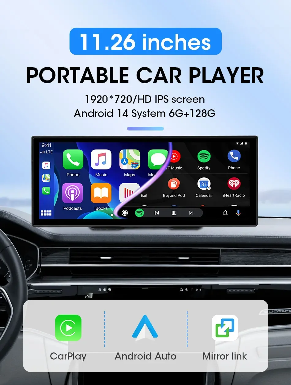 11.26″ Carplay DVR Android 14 6+128G Dashcam 8 Core Wireless Android Auto Split Screen 5G WIFI Car DVR Video Recorder Dual Lens