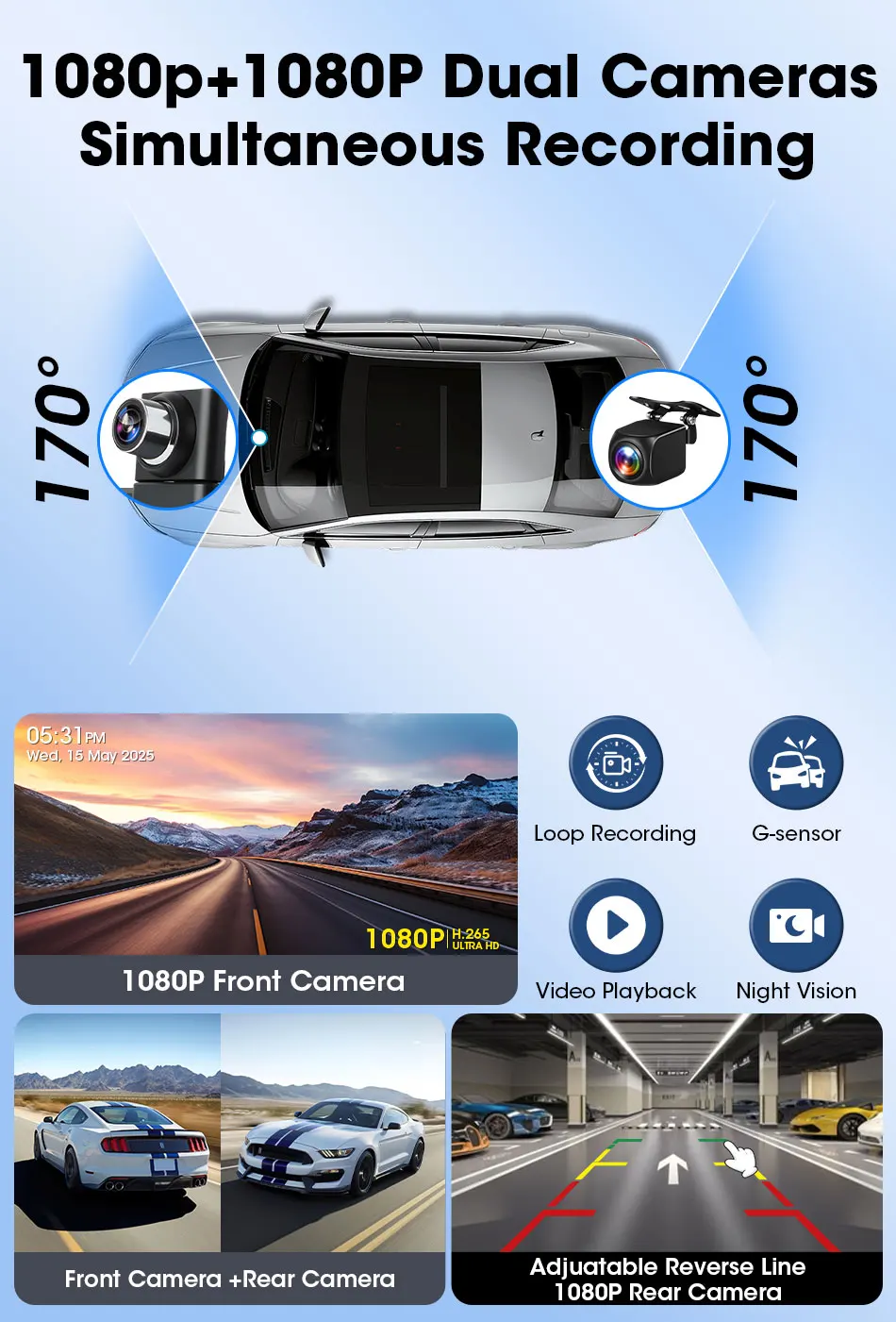 MEKEDE Car Dash Cam Full HD 1080P 170° Wide Angle for Car Multimedia Player Navigation Parking Monitor ADAS DVR Driving recorder