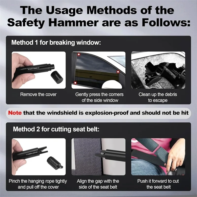 2 In 1 Car Safety Hammer Mini Safety Hammer Broken Car Window Breaker Escape Multifunctional Safety Hammer Steel Rescue Tool