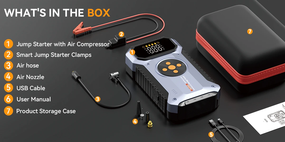 Be the first to review “2025 New Car Jump Starter With Air Portable Jump Box, Car Jumper StarterPortable12V CarBattery Booster With 150PSl TireTire Infl” Cancel reply