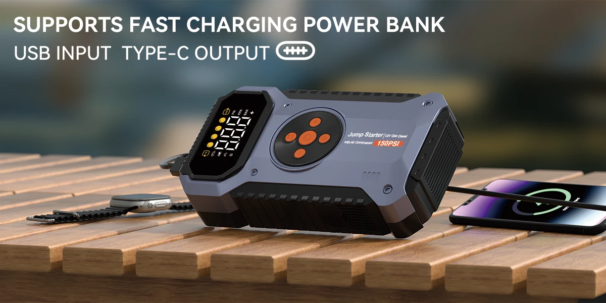 4 In 1 Car Jump Starter With Air Compressor Peak 3000A Auto Battery Booster 150PSI Air Pump Portable Power Bank Tire Inflator