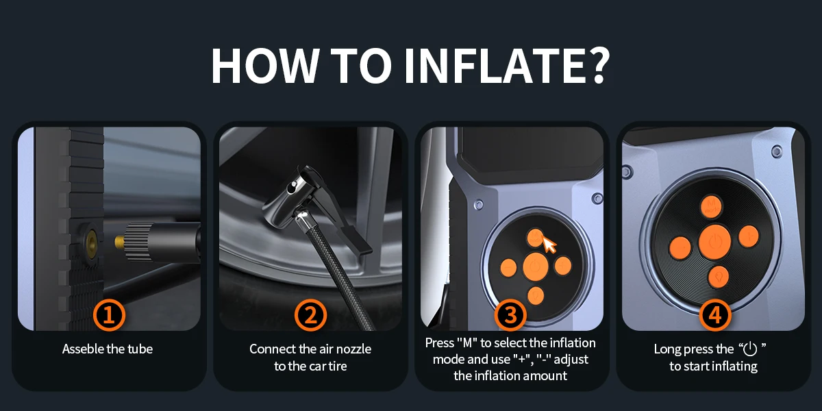 12000mAh Multi-Function Car Jump Starter&Air Compressor&Air Blower 12V Portable Battery Booster Inflator Fast Charging