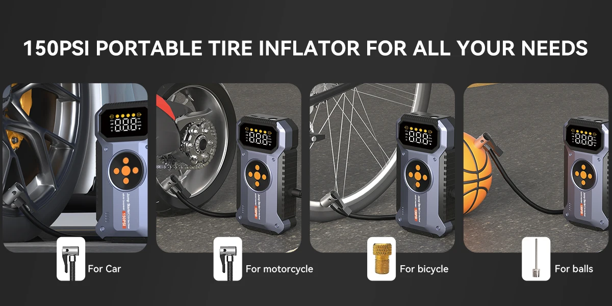2025 New Car Jump Starter With Air Portable Jump Box, Car Jumper StarterPortable12V CarBattery Booster With 150PSl TireTire Infl