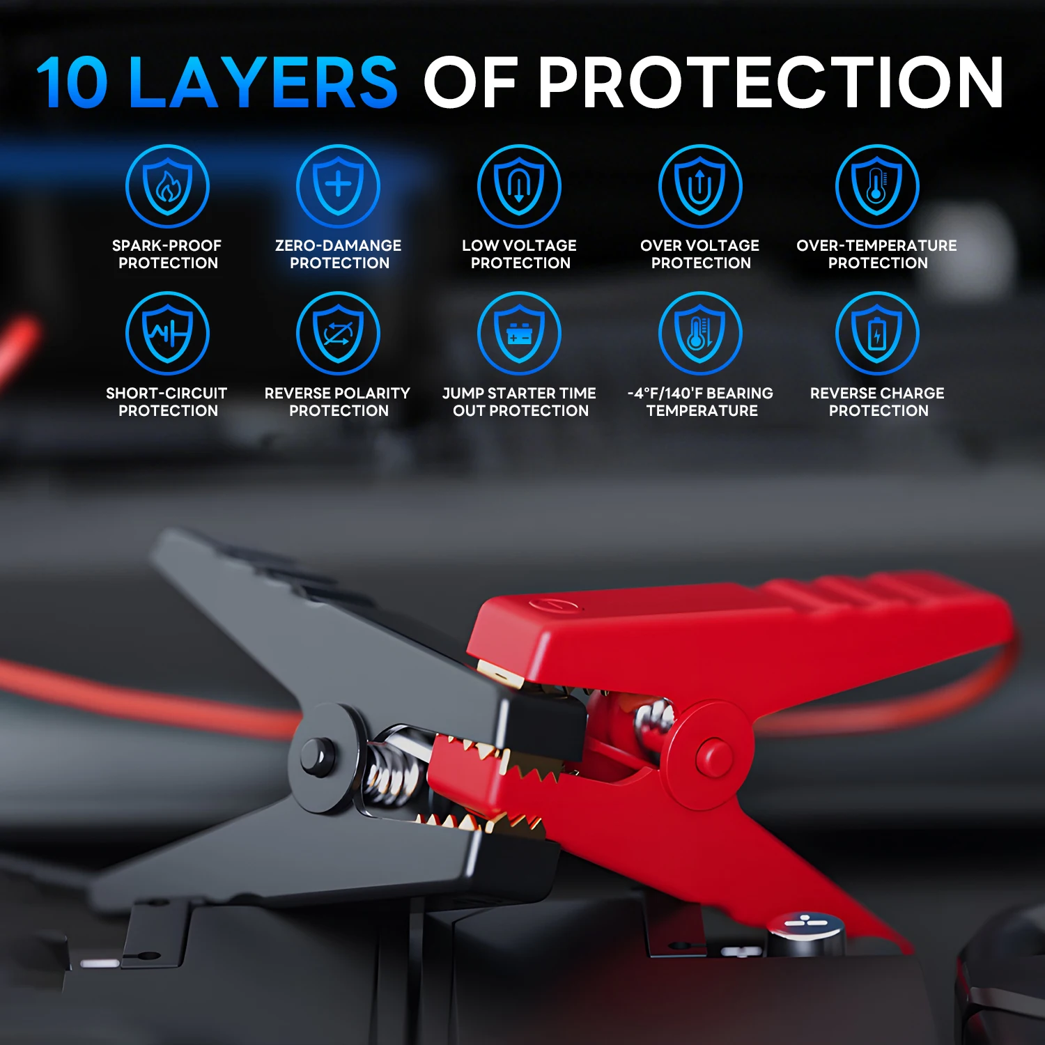 Portable Jump Starter Power Bank Fast Charging LED Light Car Battery Charger Truck & Motorcycle Peak Current 2500A