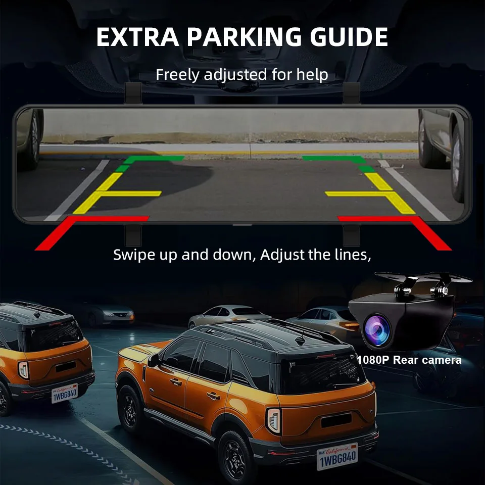 Smart rear view angle switch between driving and parking.You could see all further vehicles and objects clearly behind.you while real-time driving and it will switch the rear view camera automatically to give a closer backup image when parking.