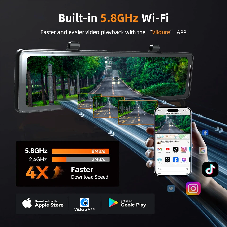 11.28 inch Full View Touch Screen provides crystal image without any delay.Very clear and smooth images display as like a stream flowing on the excellent WDR and Auto Adjusting Brightness Streaming Mirror.