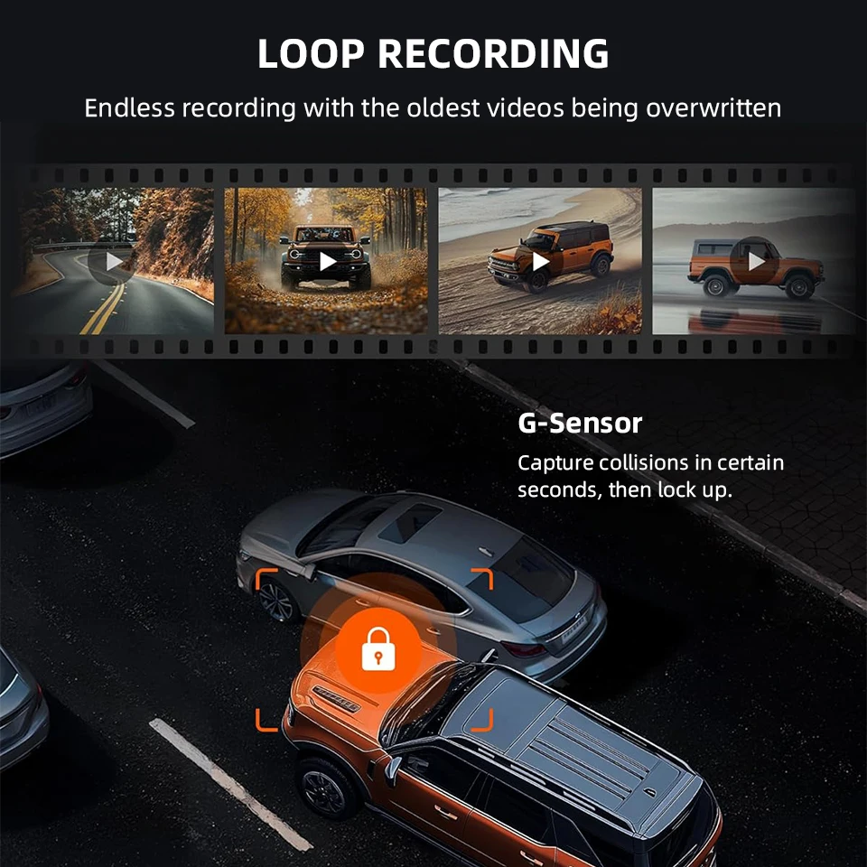 170 Degree Angle 4k front camer with 140 Degree Angle 1080P Night vision Rear view Camera (Optional),allows for simultaneously recording videos from two different angles.Two split view make you have clear view from front and back-up camera.