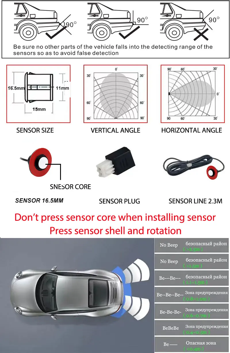 4×16.8mm Reverse Radar 4 Sensors Voice Broadcast LED Backlight Display Universal Car Parking Safety Auxiliary Install Kit