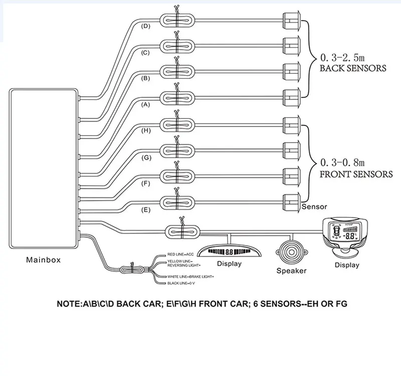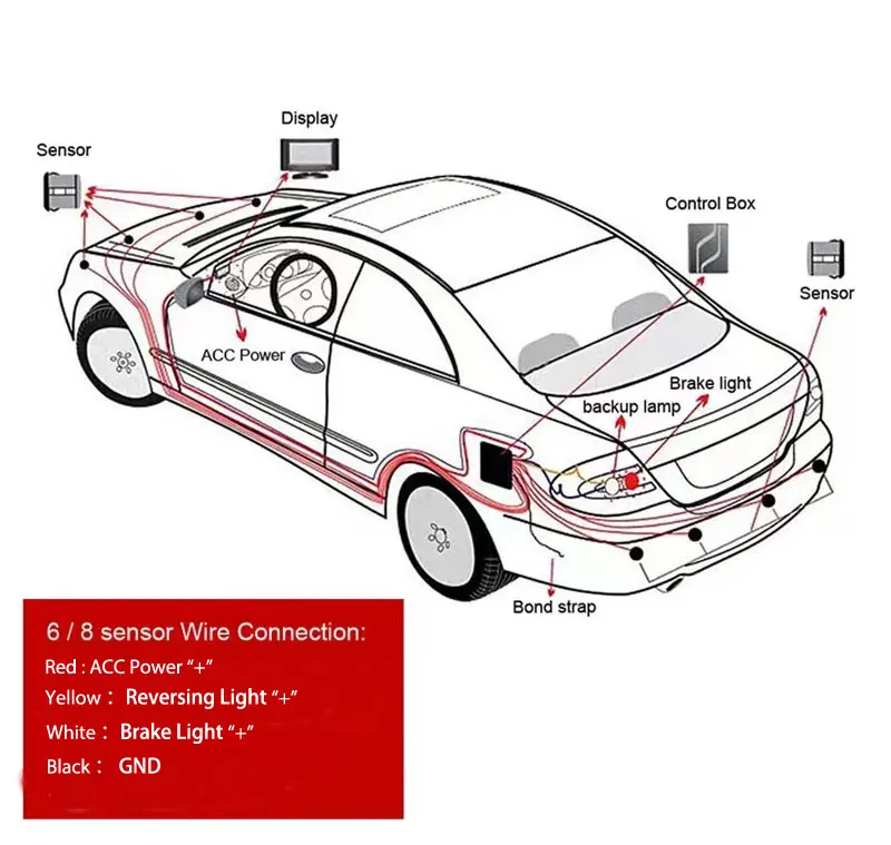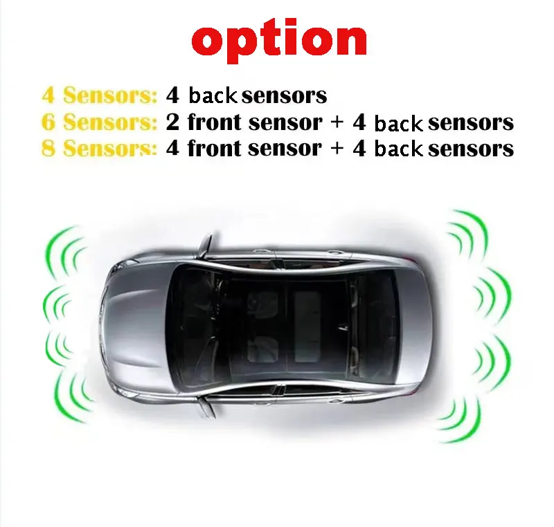 8 Parktronic Parking Sensors Kit Reversing Front and Rear Car Backup Radar Detector Backing Assistance Sound Aler AID