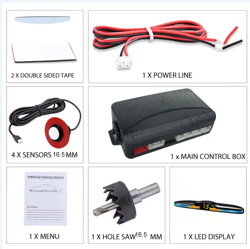 Be the first to review “4×16.8mm Reverse Radar 4 Sensors Voice Broadcast LED Backlight Display Universal Car Parking Safety Auxiliary Install Kit” Cancel reply