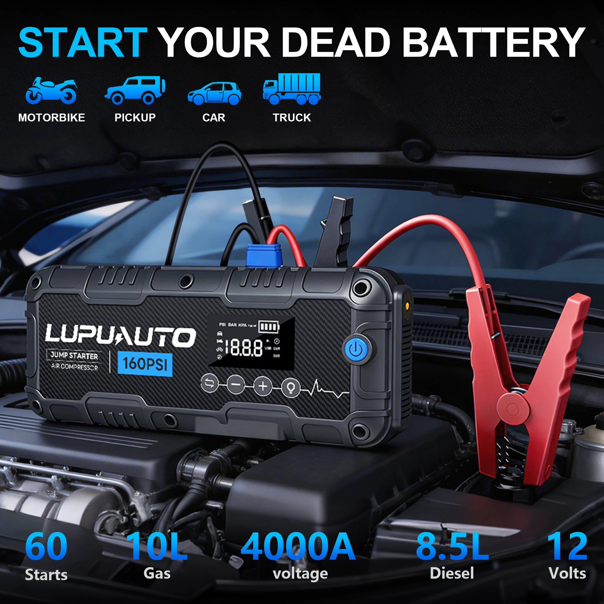 Portable Car Jump Starter with Air Pump 5000A Peak, 10.5 Bar Maximum Inflation Auto Tyre Inflator Battery Starters with LED