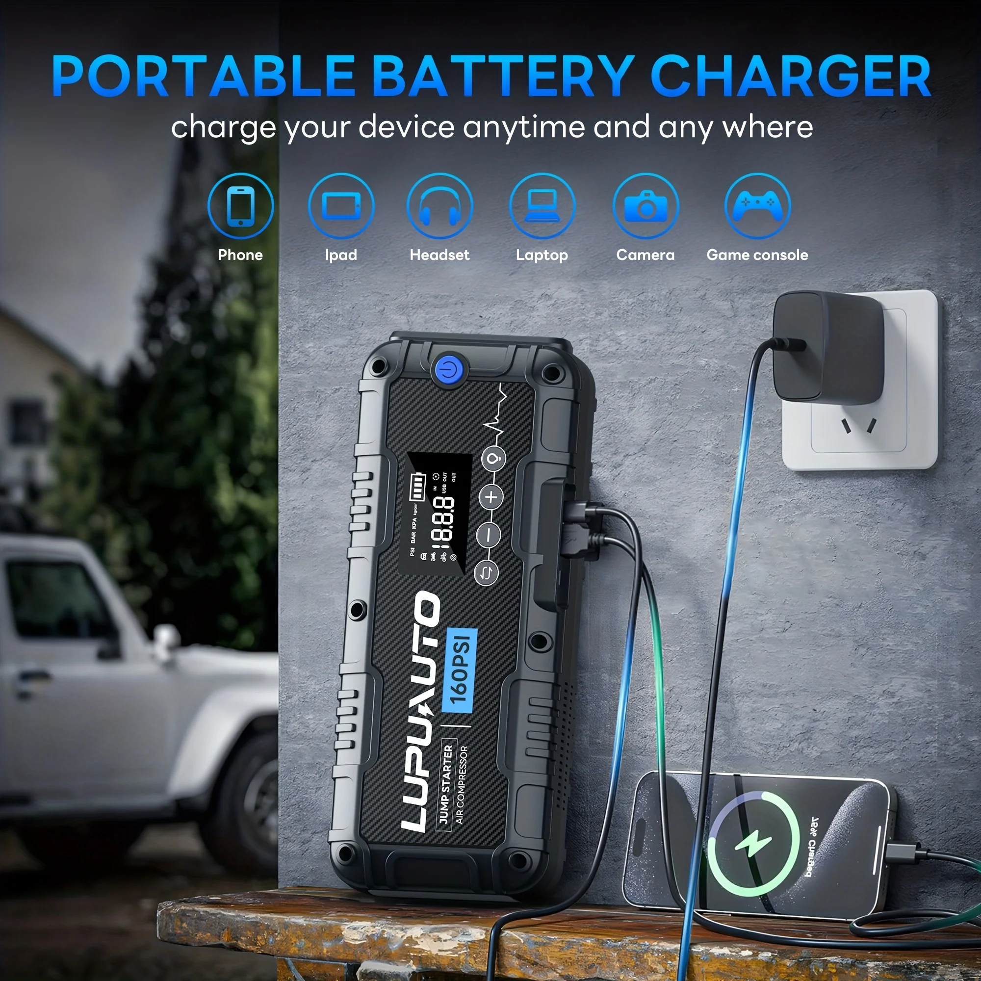 7000A Car Jump Starter With Air Compressor Booster Tyre Inflator Portable Car Battery Power Bank LED Flashlight Smart Cable