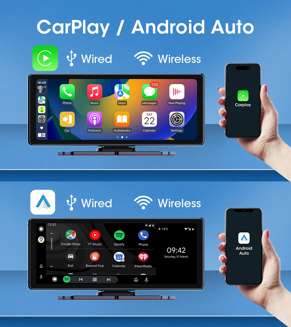 With wireless Carplay and Android Auto, you can easily connect your phone to your car's audio system and enjoy seamless integration.