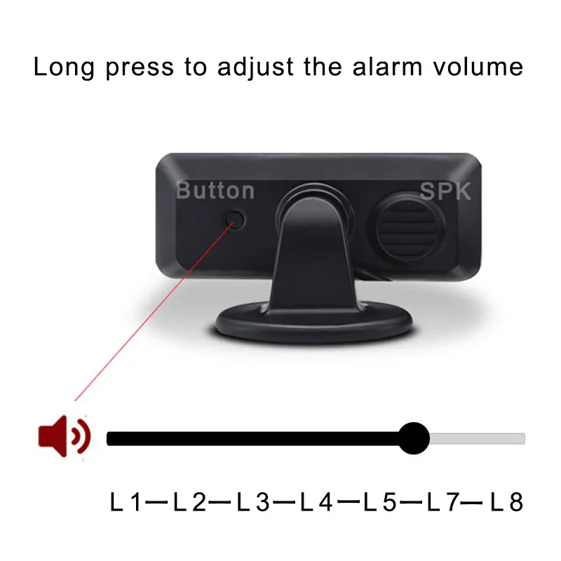 There is a button on the display, through which you can switch between the alarm sound (three types) and the alarm volume (7 levels)