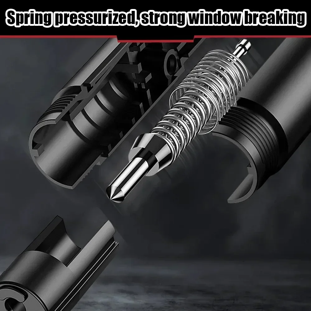 2.Using high-strength tungsten steel head, Rockwell hardness of 55, can easily cut metal and glass. The window can be broken by one click, New gun spring mechanical structure,60 times supercharged cohesion produces 20KGF impact force to push the drill bit. Instant blasting.