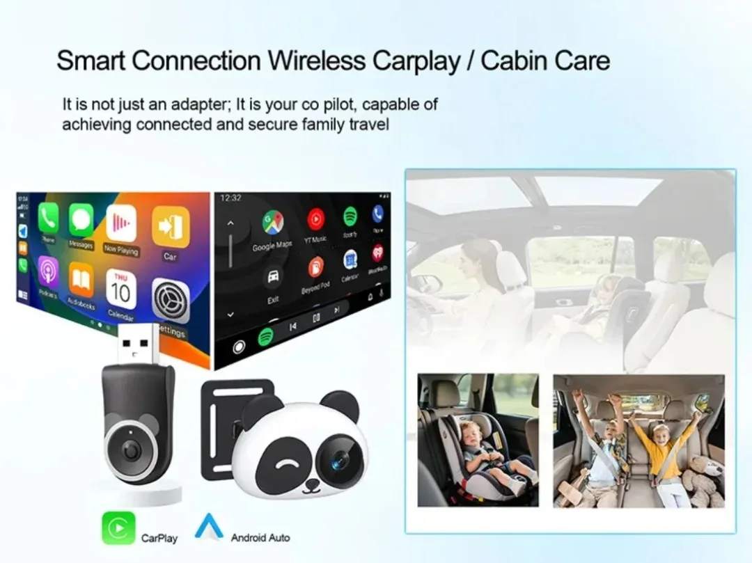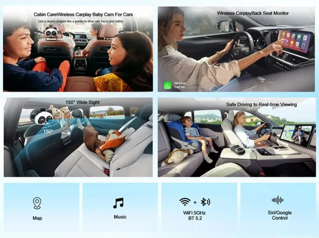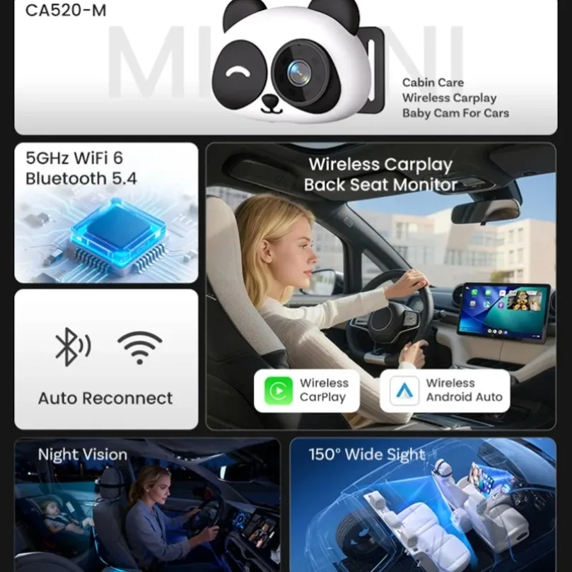 CA520-M Wireless CarPlay & Android Auto with 5GHz Wi-Fi Cabin Care Package 150° Wide Angle Night Adapter for Modern Families