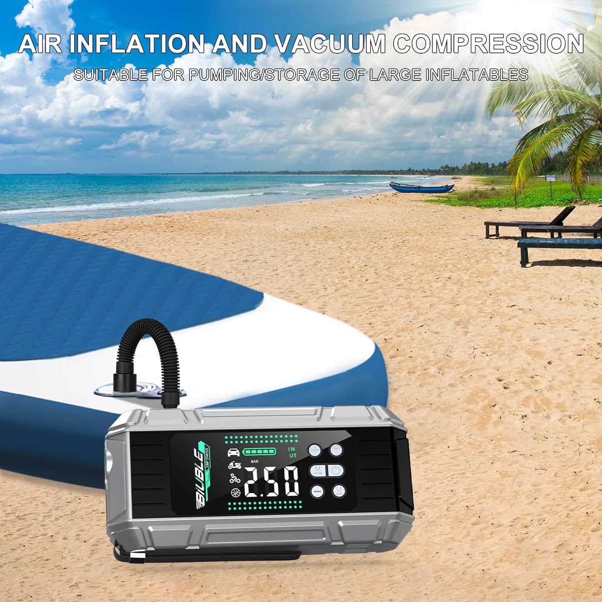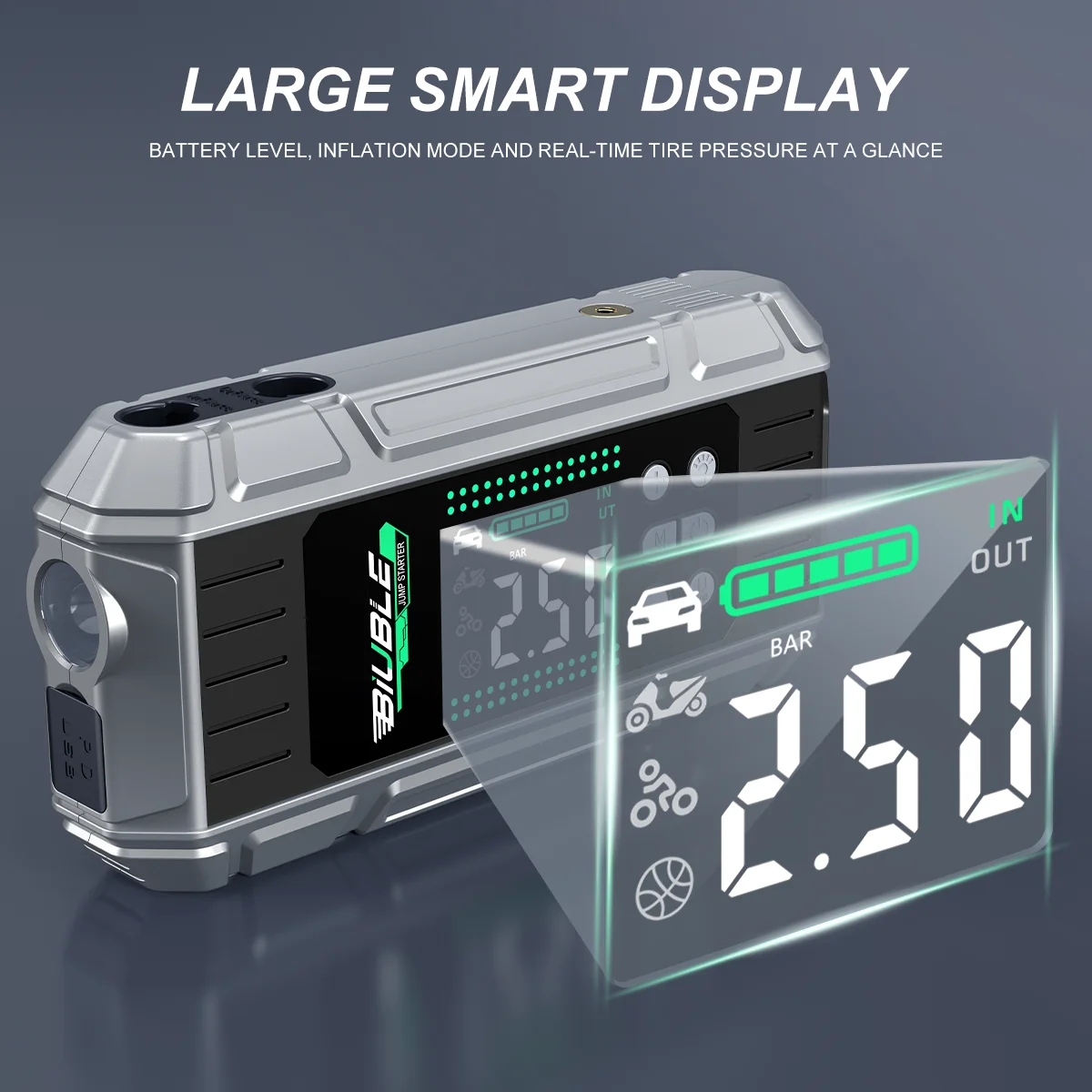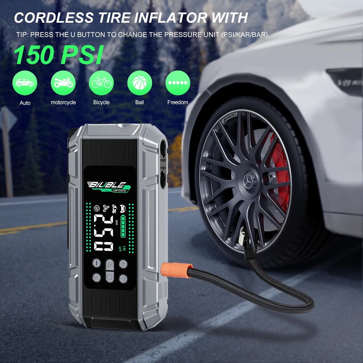 - FEATURE 7: Jump Starter Power Bank with 150 PSI Compressor