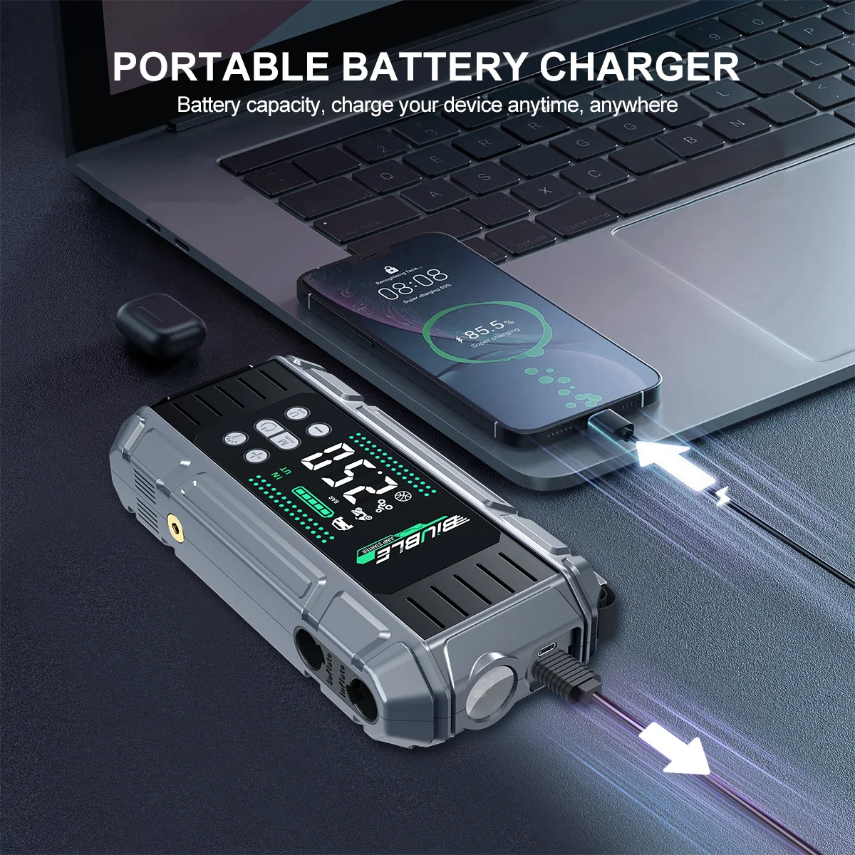 - FEATURE 5: Portable Car Jump Starter