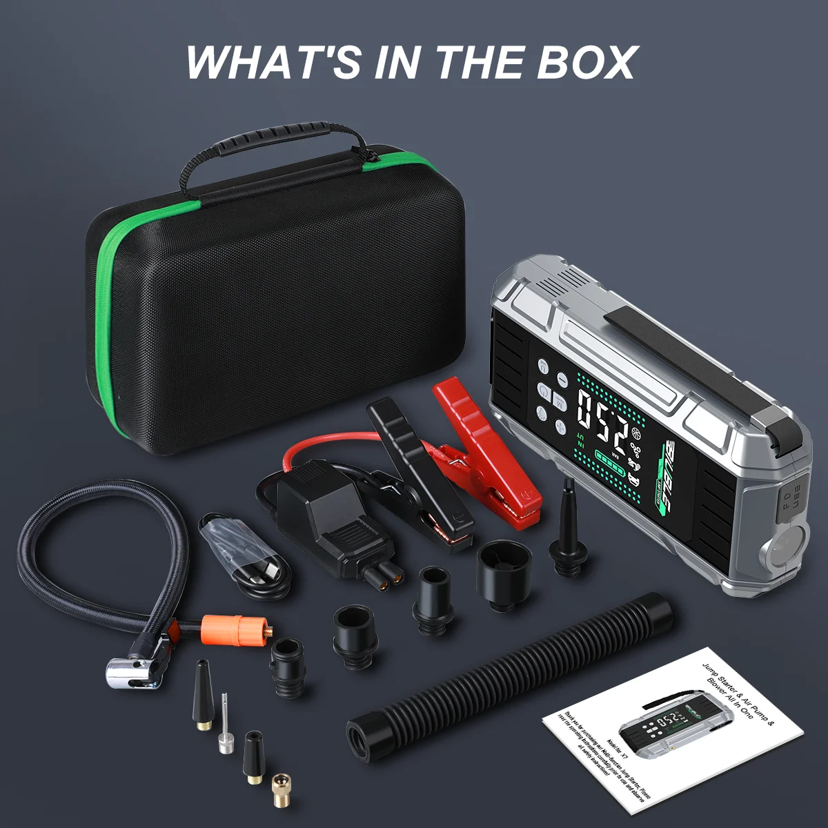 Multifunctional Air Pump Jump Starter with Air Compressor 3000A Peak/150PSI Battery Jump Starter Digital Tire Inflator