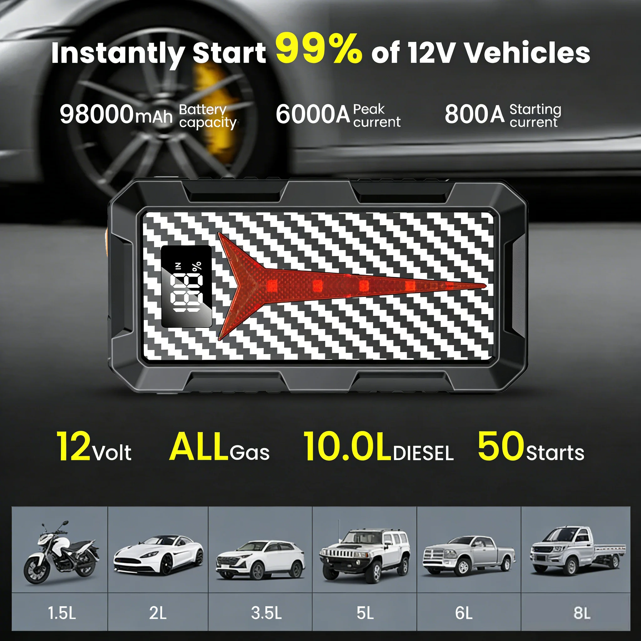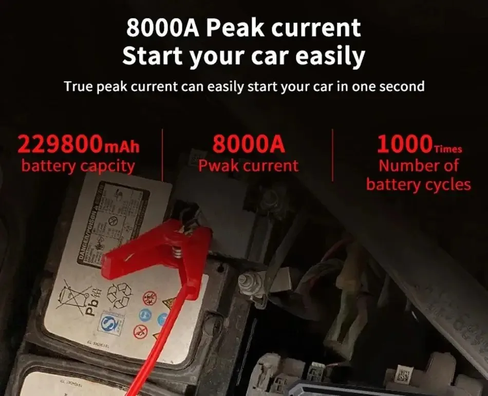 Car Jump Starter 8000A Battery Charger 298000mAh Emergency Power Bank Booster for 12V Gas and Diesel Vehicles