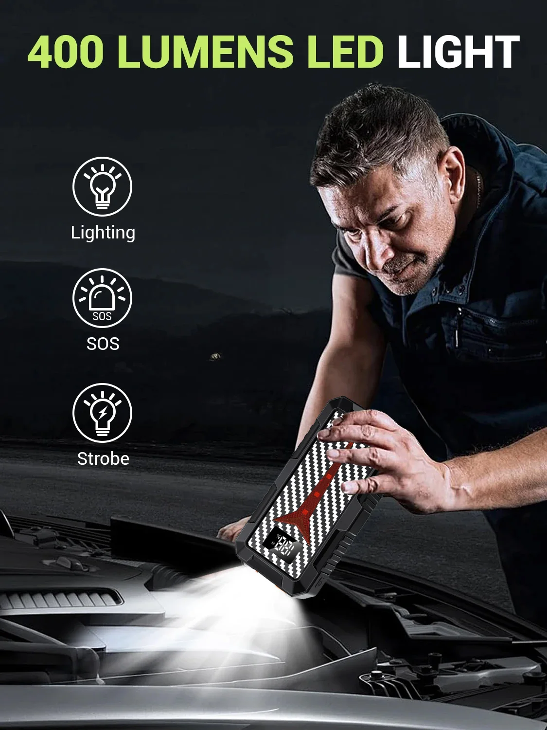 Portable Jump Starter Power Bank Fast Charging LED Light Car Battery Charger Truck & Motorcycle Peak Current 2500A