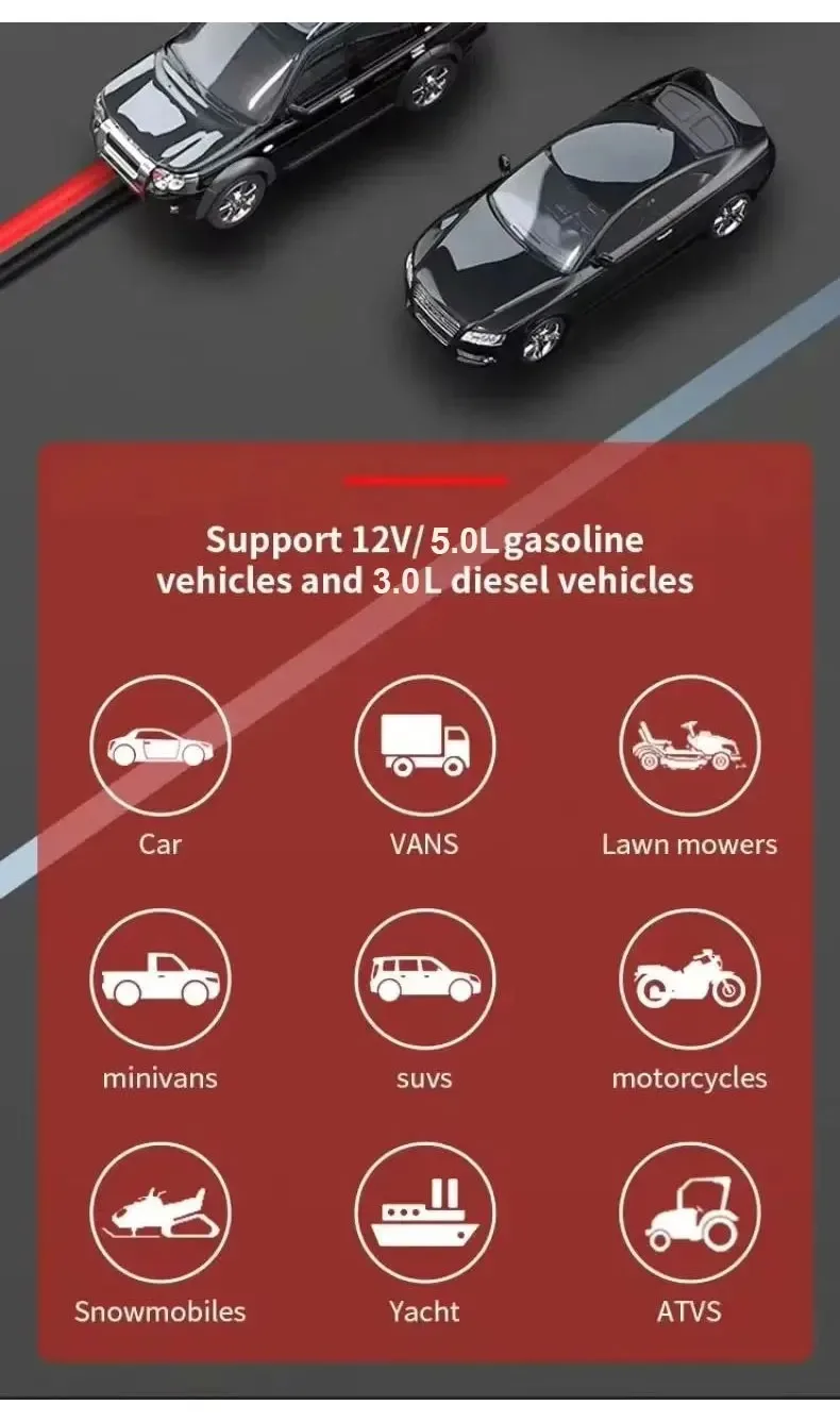 Applicable model: applicable to 12V vehicles, starting gasoline vehicles 5.0L or less, starting diesel vehicles 3.0L or less