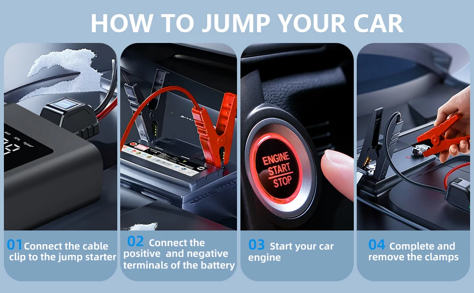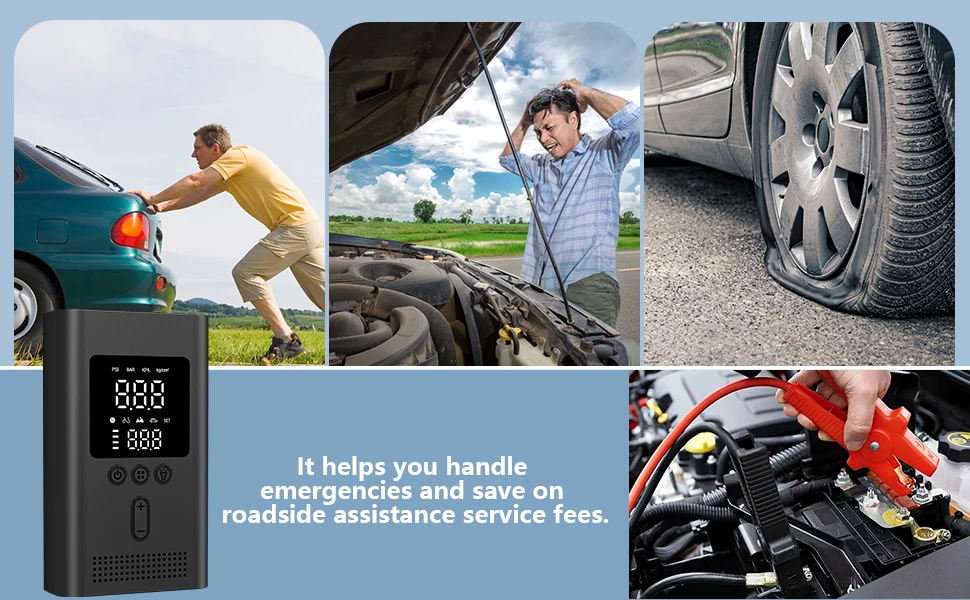 2025 New Car Jump Starter With Air Portable Jump Box, Car Jumper StarterPortable12V CarBattery Booster With 150PSl TireTire Infl