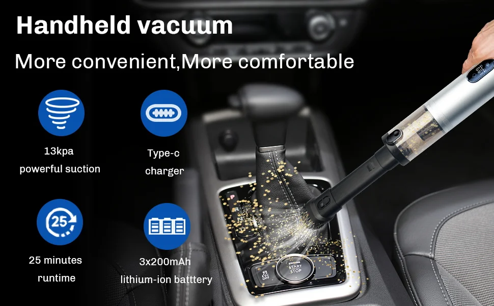 Mini Portable Car Vacuum Cleaner, Type-C Rechargeable Wireless Blower & Suction, Multifunctional, Ideal for Car