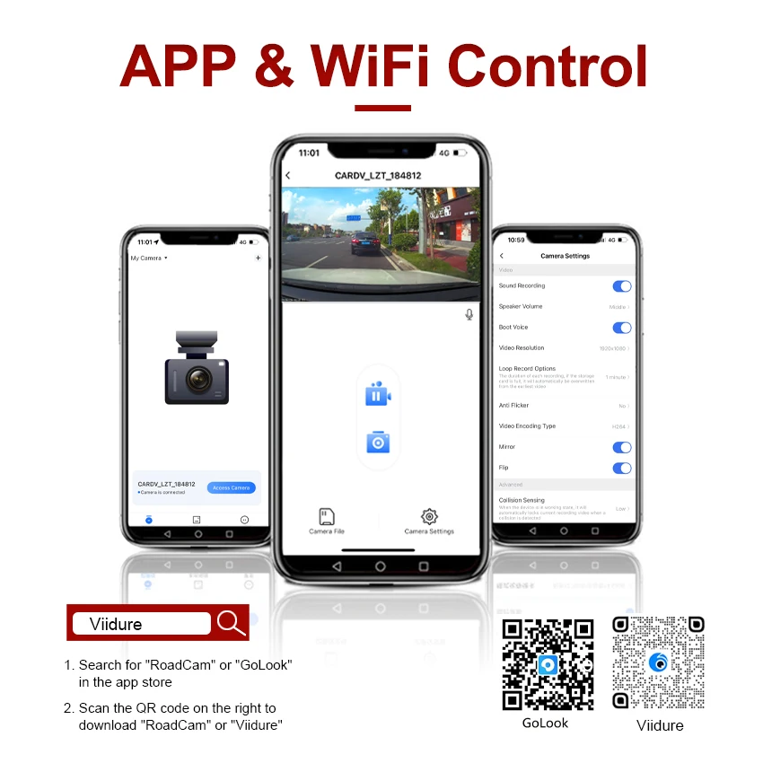 You can use the built-in WiFi to connect the dash cam, and it is easy to share the video to your friends or social platform through the APP. Recoding each vivid moment and enjoy your driving journey.
