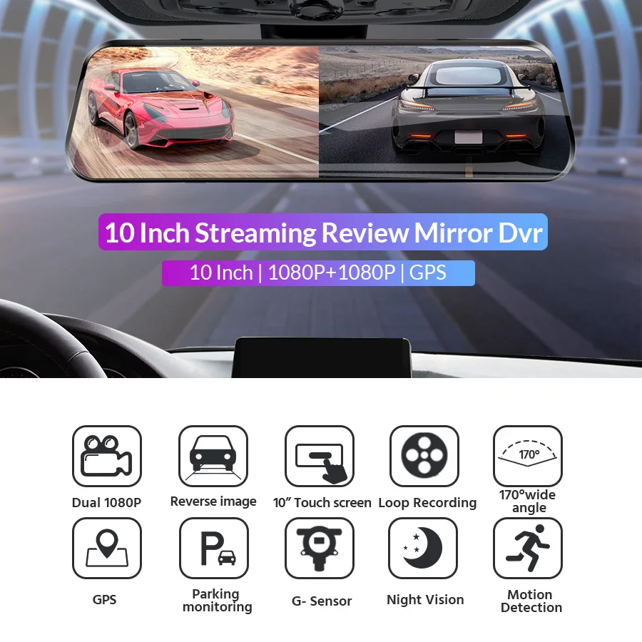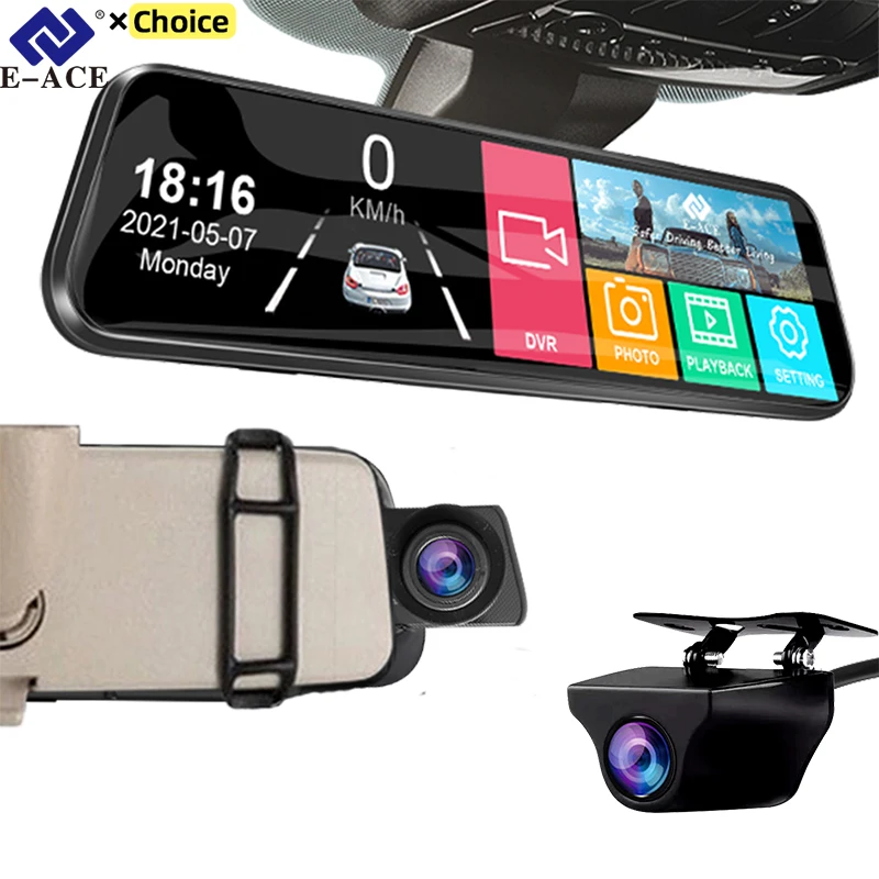E-ACE A20P Car Dvr Streaming Media Mirror Dash Camera 10 Inch FHD 1080P Video Recorder Dual Lens Support 1080P Rearview Camera |