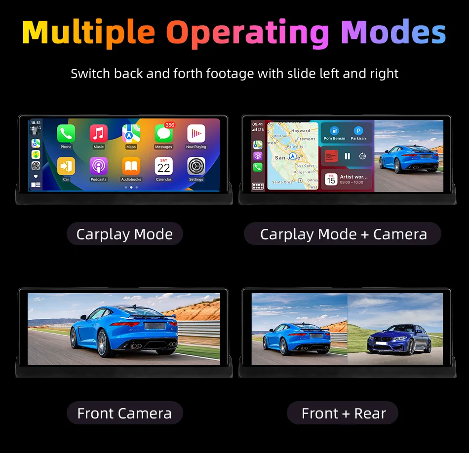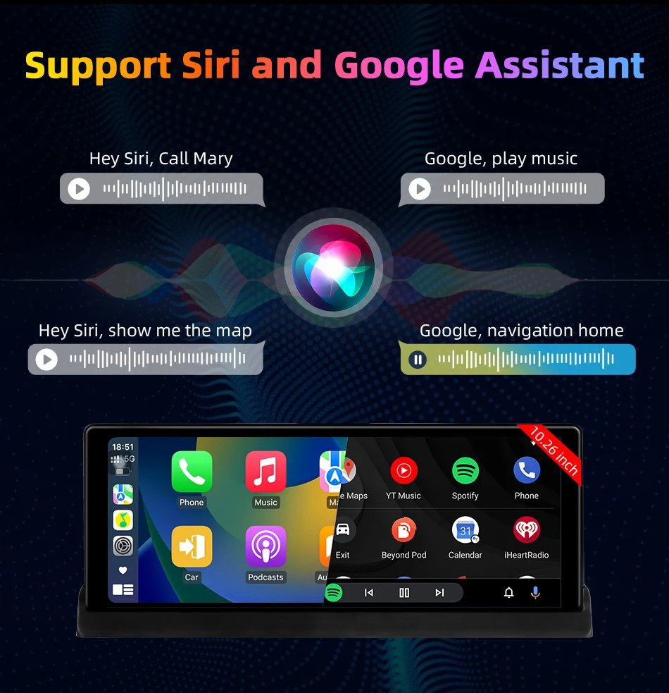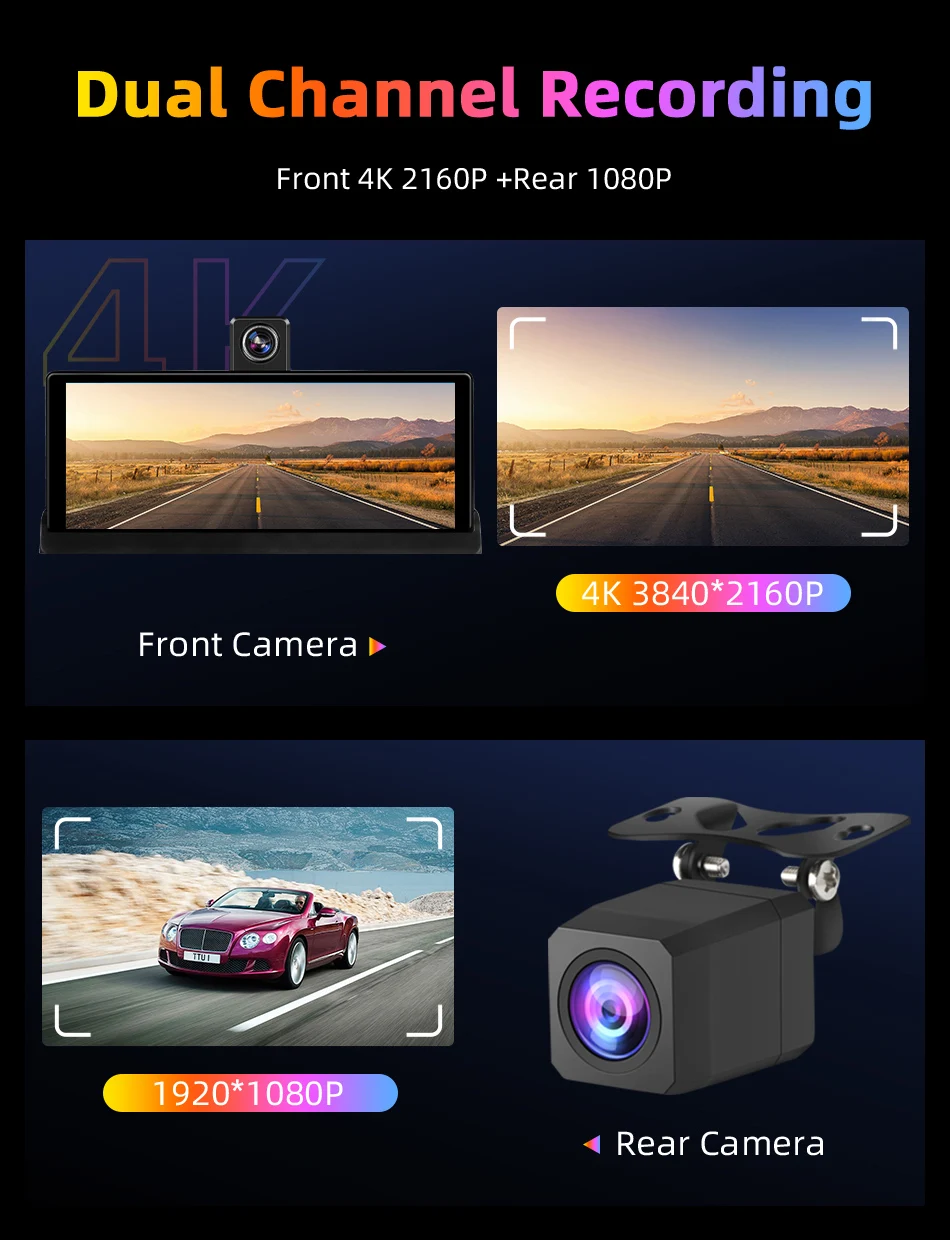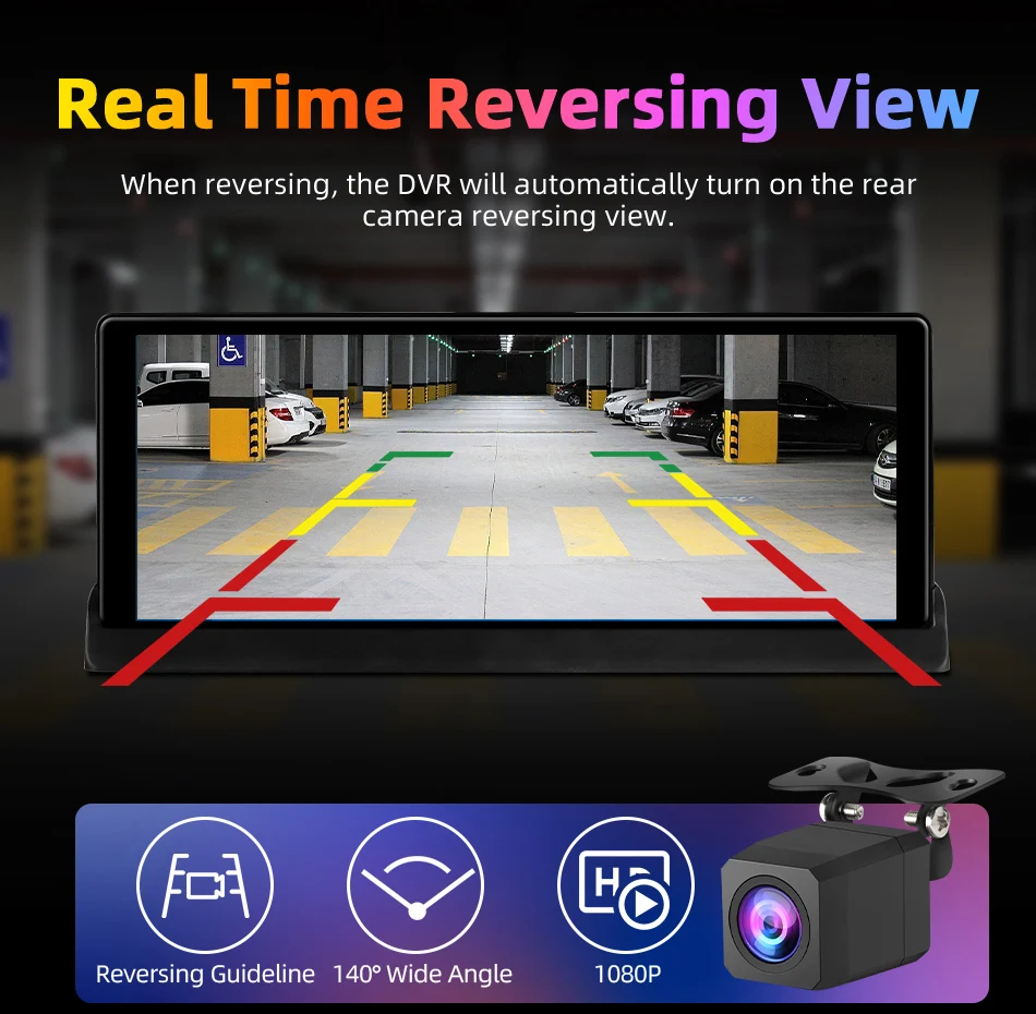 Carplay, Android Auto, 4K front camera, voice control, mobile screen projection, FM+Bluetooth+AUX audio output,GPS Nacigation,10.26 inch touch screen,recerse assist