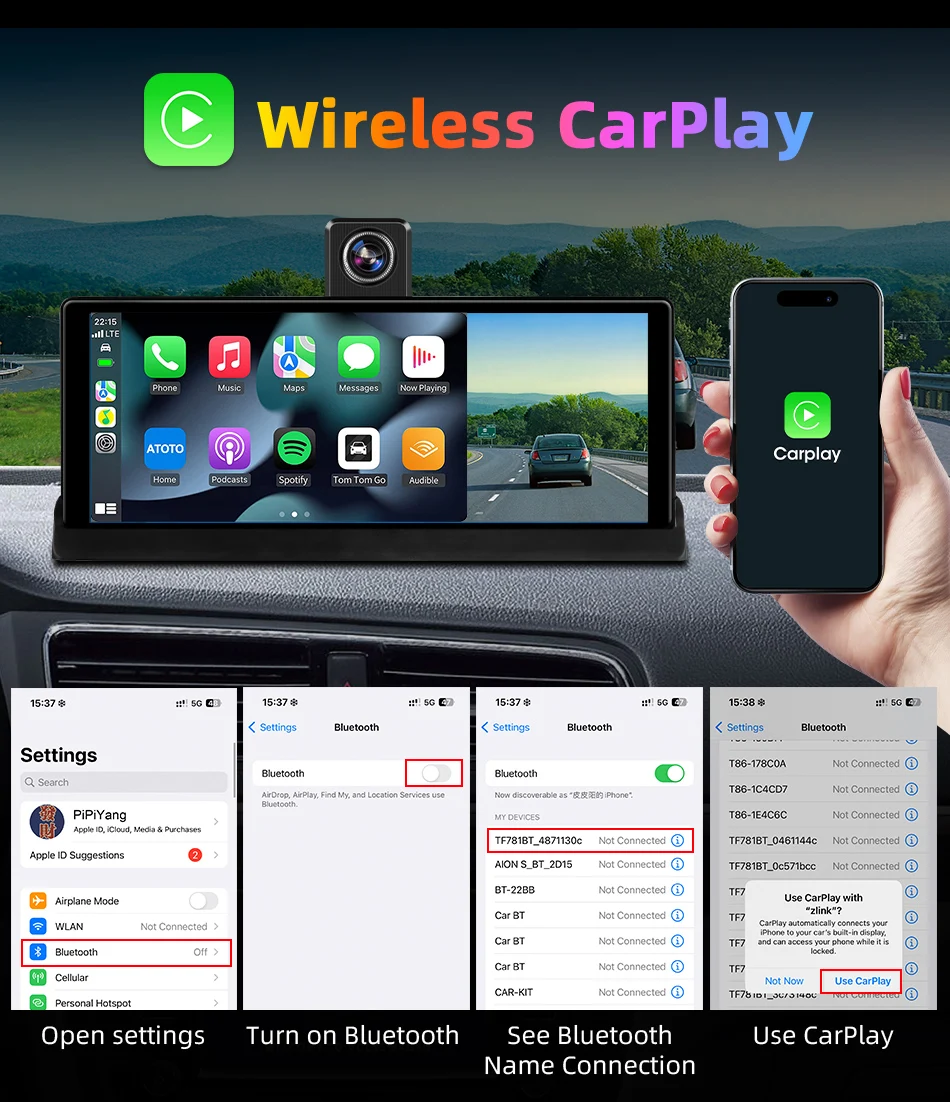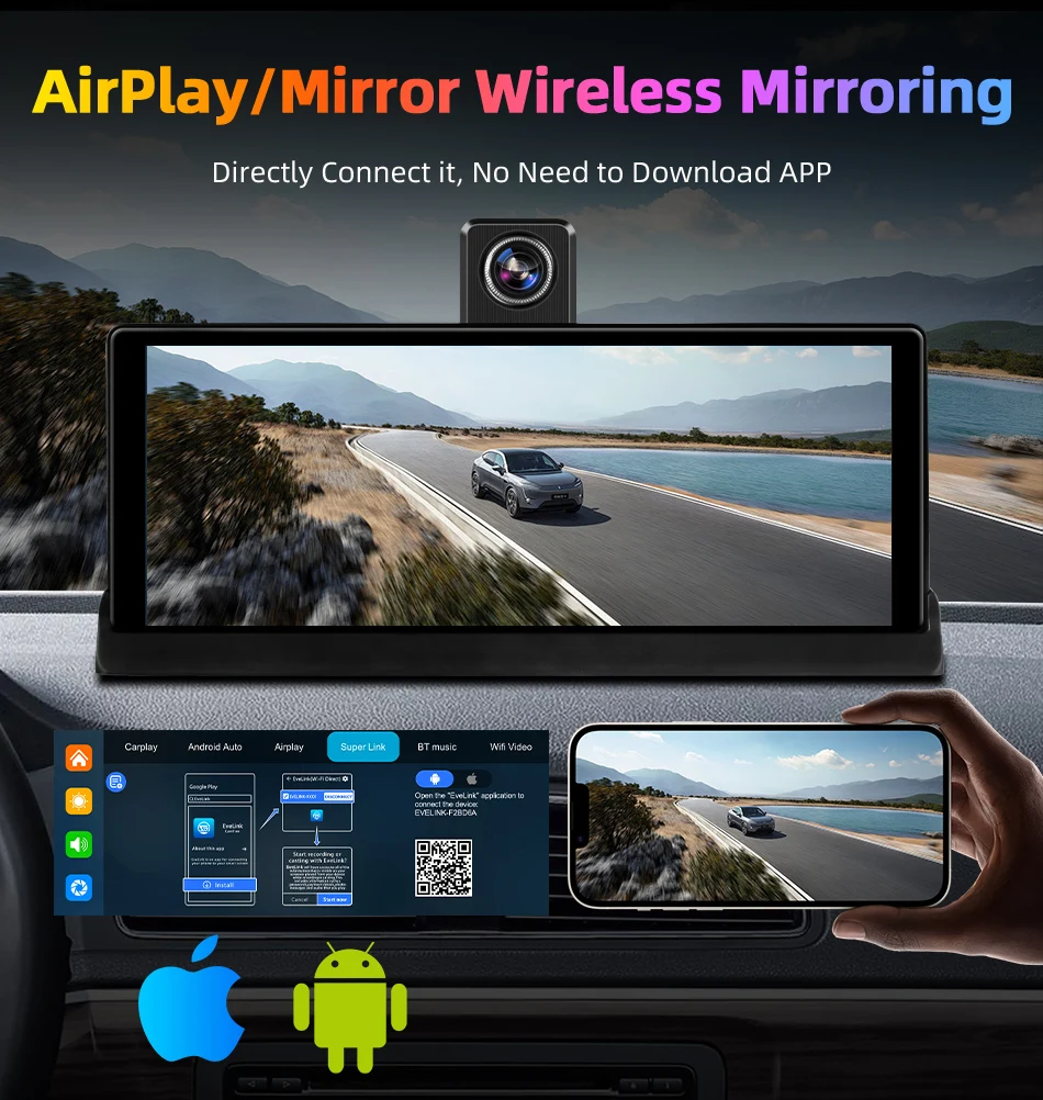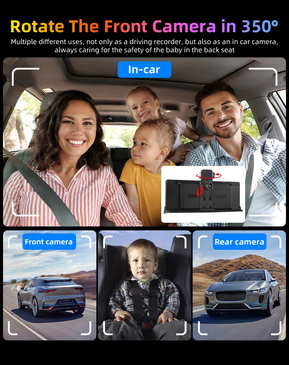 Wireless Carplay | Android Auto | Mirrorlink | 4K 350° Rotatable Lens