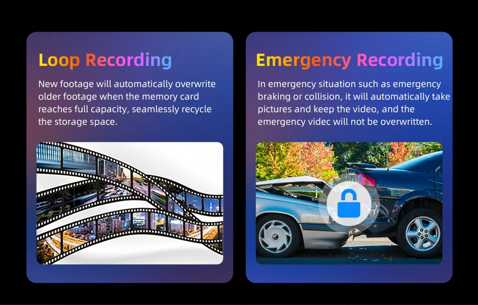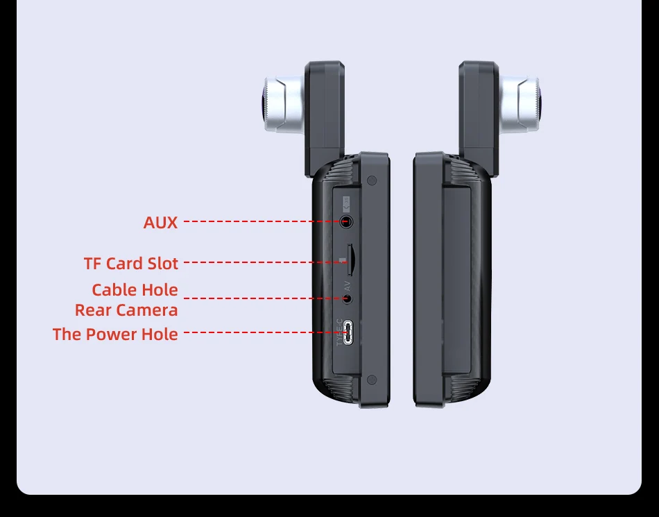 • 350 ° rotatable 4K lens, high-definition recorder, paired with rear 1080P camera for dual recording in front and back.