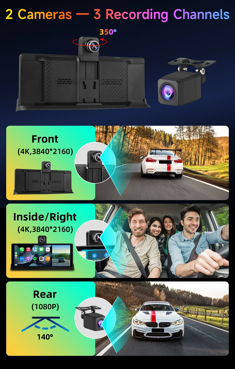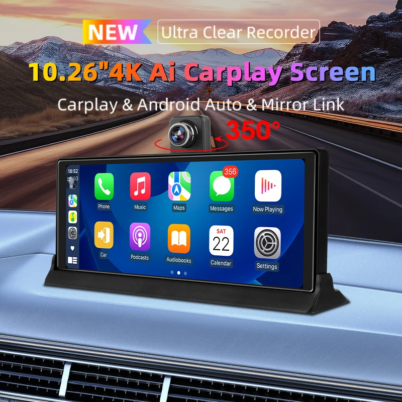 Develuck Official-website 10.26” 4K DVR Dashcam Wireless CarPlay Android Auto 350° Rotatable Lens Intelligent Car System FM AUX