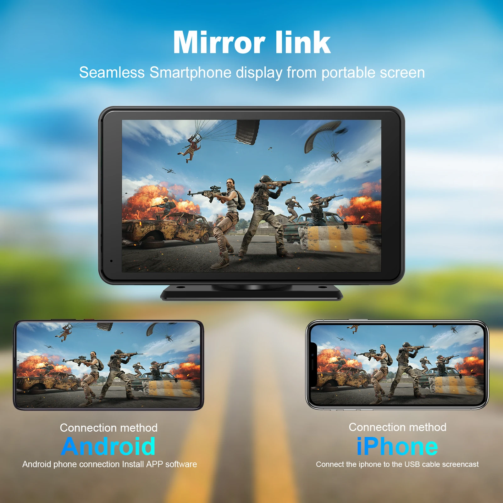 Ezonetronics 7 Inch Touch Screen Car Portable Wireless CarPlay&Android Auto,Support SD card,Bluetooth music and Mirror link