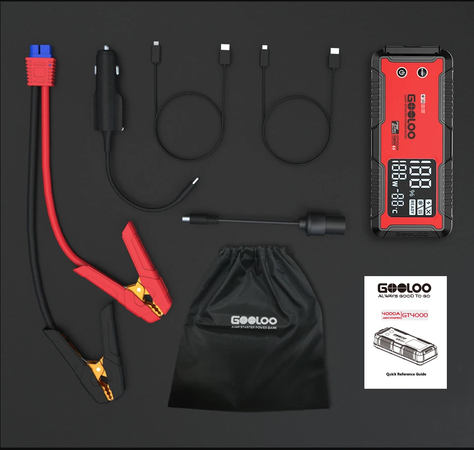 GOOLOO 4000A 12V Charger External Battery Booster 24000mah Car Jump Starter Car Battery PD100W Fast Charging Portable Power Bank