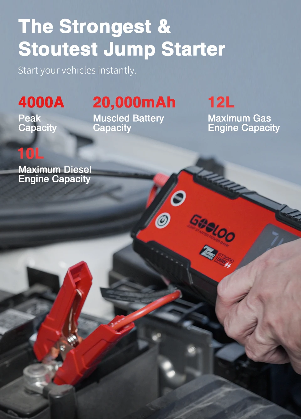 Help you out of the following dilemmas quickly and easily. Forget to turn off the light all night, encounter the extreme weather, or need a jump, GOOLOO jump starters help you out of desperate and get fast on the road.