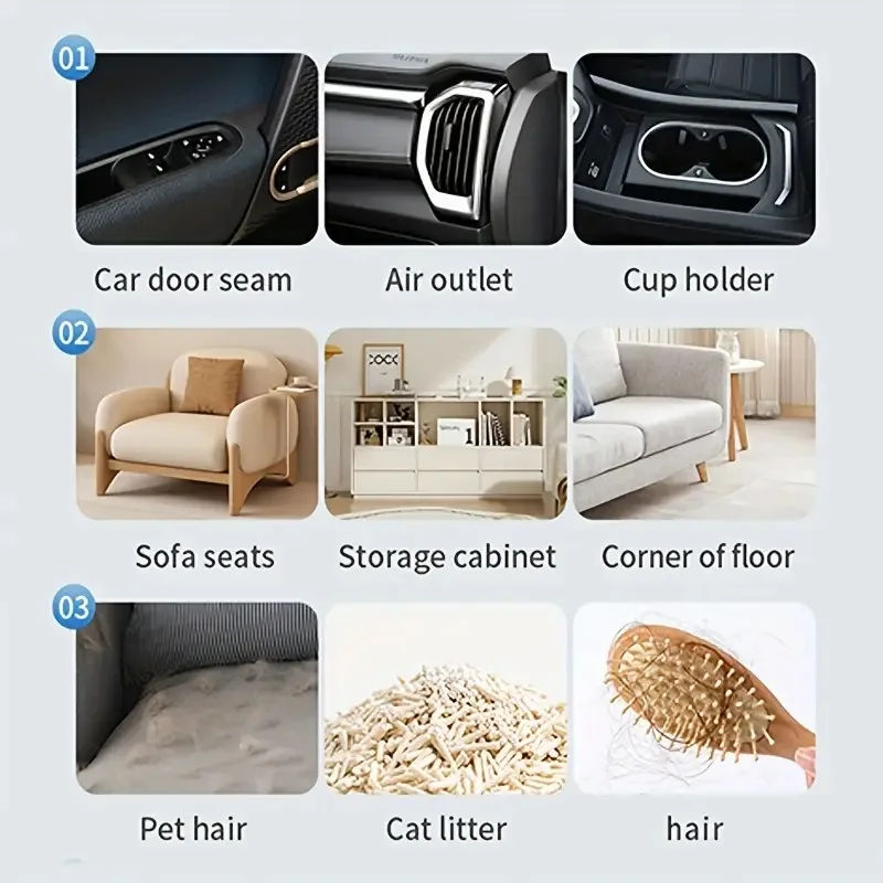 ![]() 5 en 1 aspirateur de voiture Mini aspirateur sans fil multi-fonction aspirateur de voiture portable puissant Machine d'aspiration de voiture pour le bureau à domicile Caractéristiques: 1. technologie puissante d'aspiration:Équipé d'une technologie de moteur avancée, cet aspirateur de voiture 5 en 1 offre une puissance d'aspiration impressionnante de 45,00 Pa. Le moteur à turbine à grande vitesse améliore l'efficacité de l'aspiration, assurant un nettoyage en profondeur avec facilité, ce qui le rend idéal pour lutter contre la saleté dans n'importe quel environnement. Spécification: Remarque: |