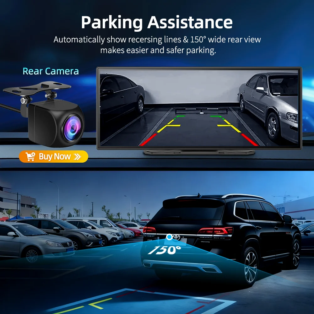 10 Inch 4K Dash Cam Carplay Android-Auto Car DVR Dual Len 5G Wifi GPS Bluetooth FM Video Drive Recorder Stream Mirror Dashcam