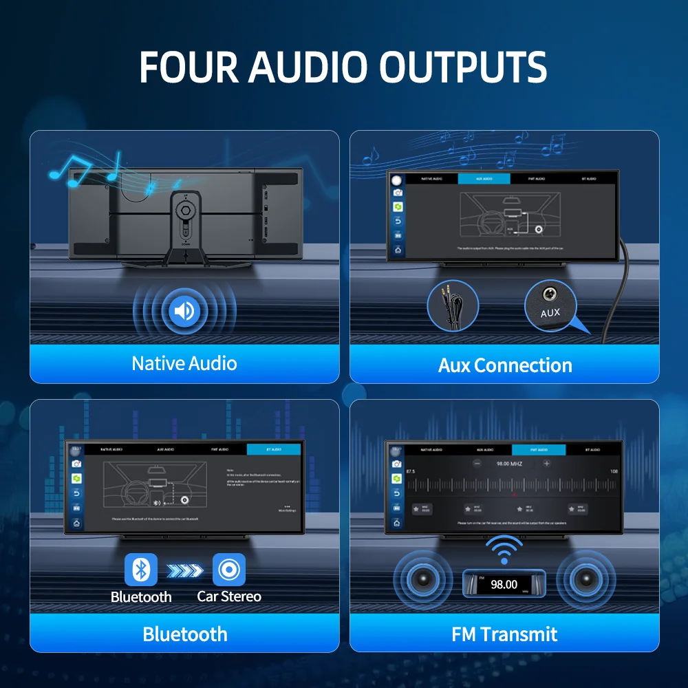 3. AUX Wired Audio: Connect to your car's AUX input via an AUX cable for stable, high-fidelity wired sound.