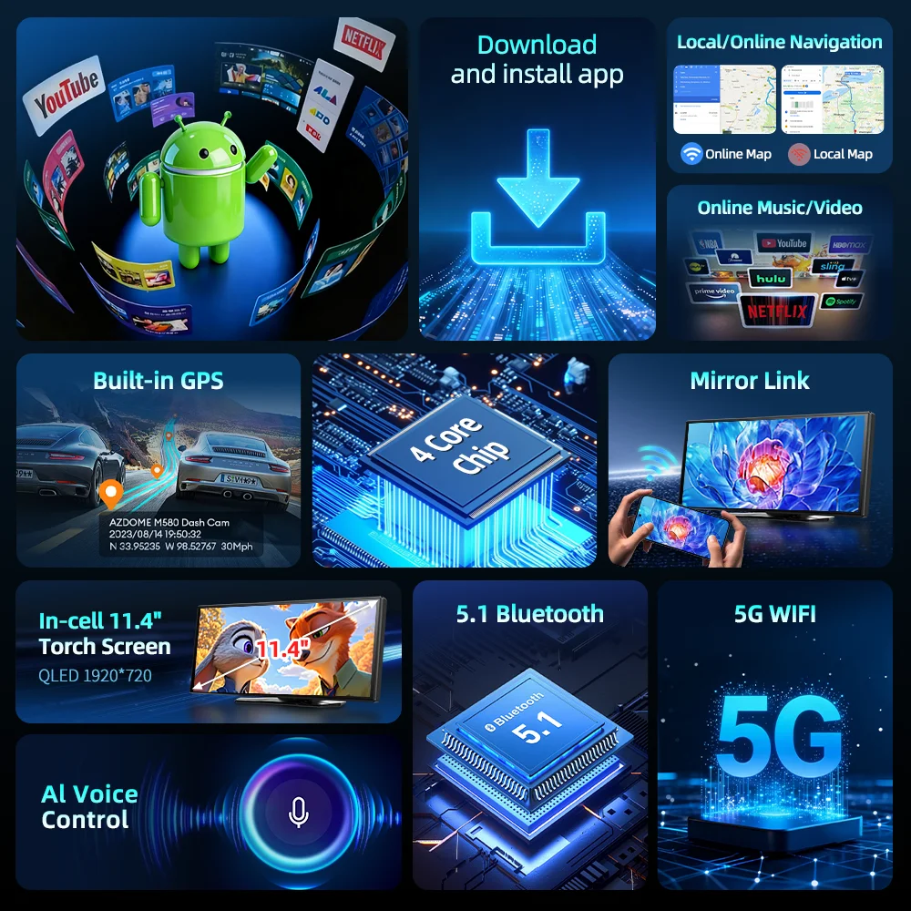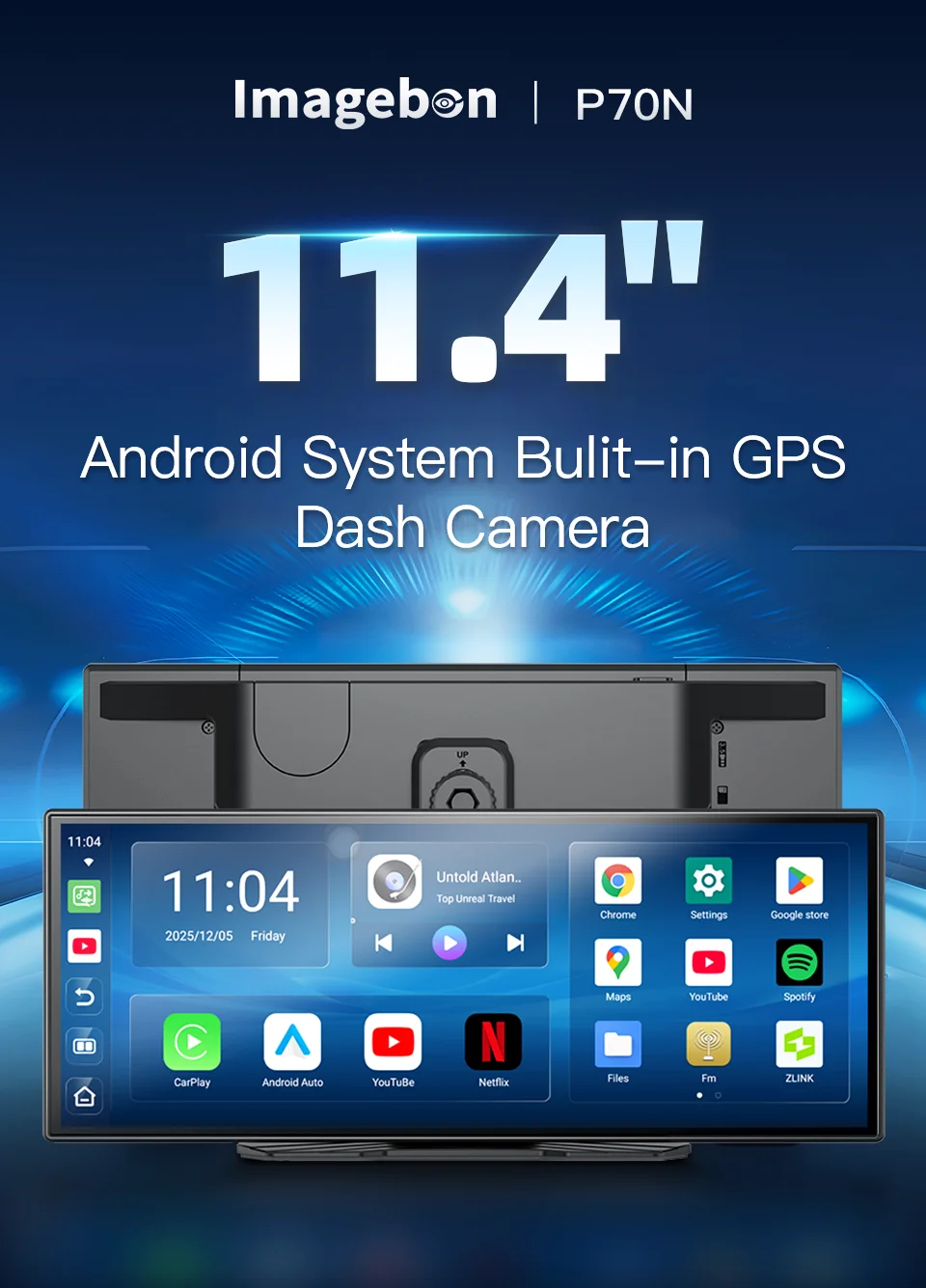 Imagebon P70N 11.4″ QLED New UI Smart Screen Built-in GPS Android System Dash Camera Wireless Carplay & Android Auto Car DVR