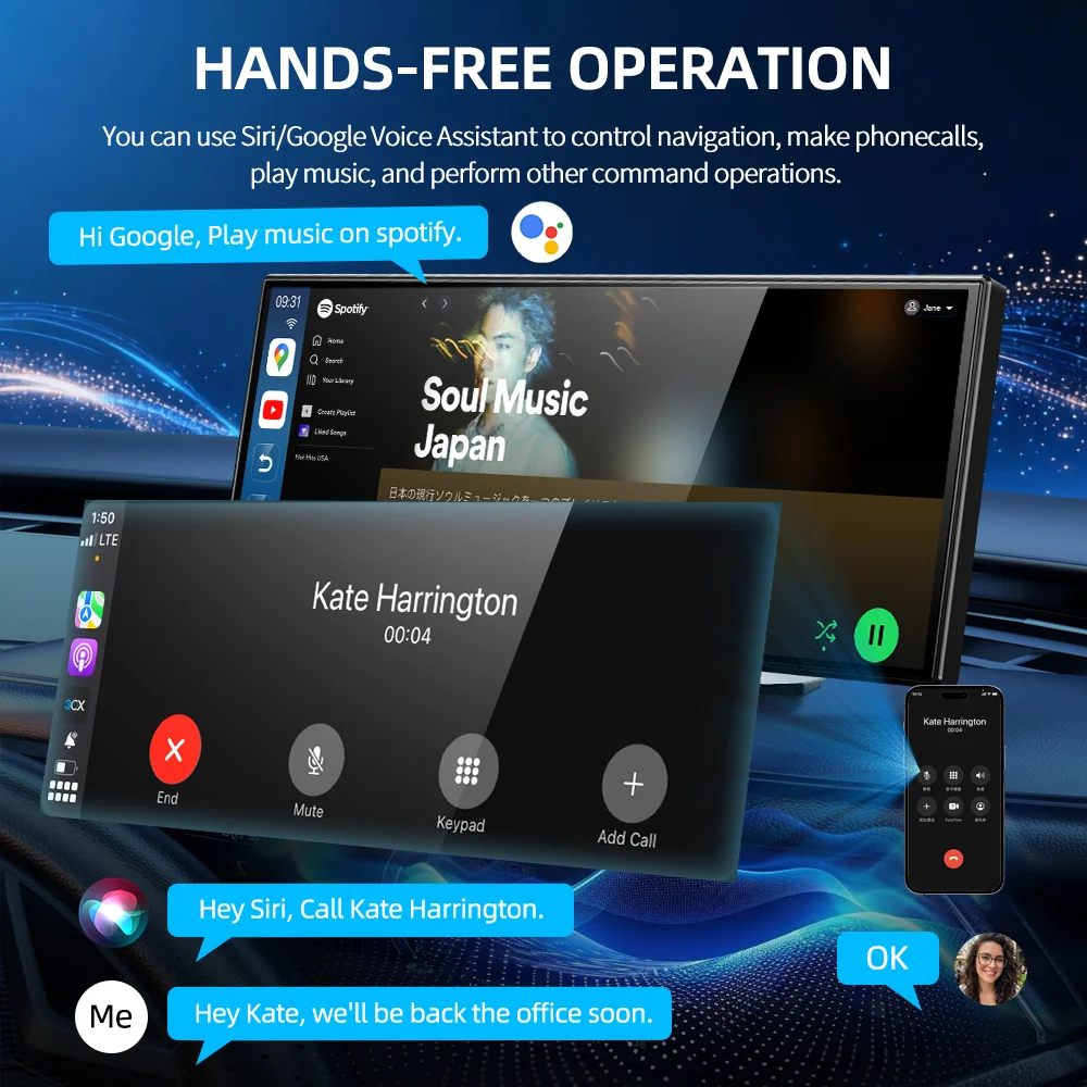 1. Supports Siri and Google Assistant: After connecting to CarPlay/Android Auto, it can be controlled via voice commands.