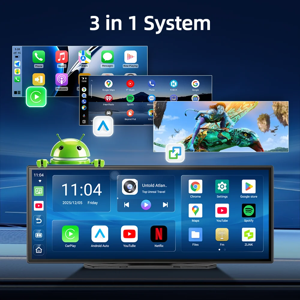 4. Four-in-One Wireless Connectivity System: Wireless CarPlay + Wireless Android Auto + Wireless Mirroring + Local Android, compatible with all devices