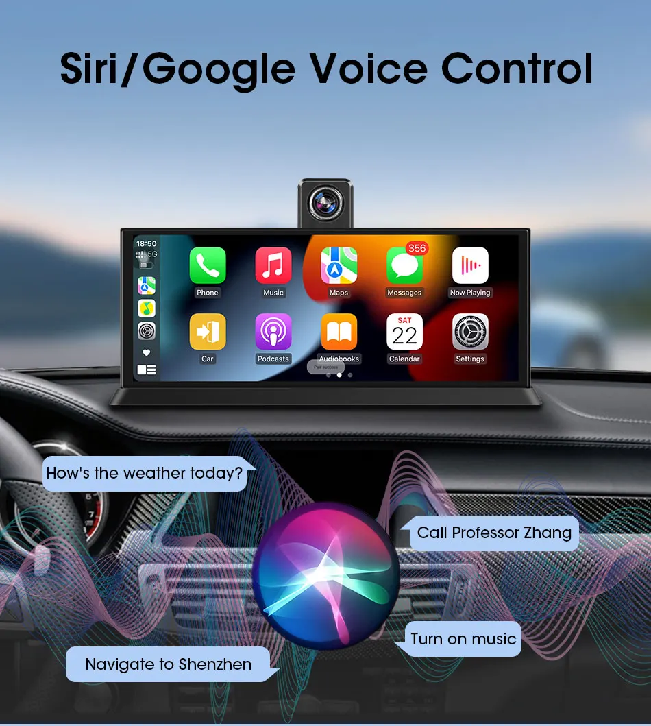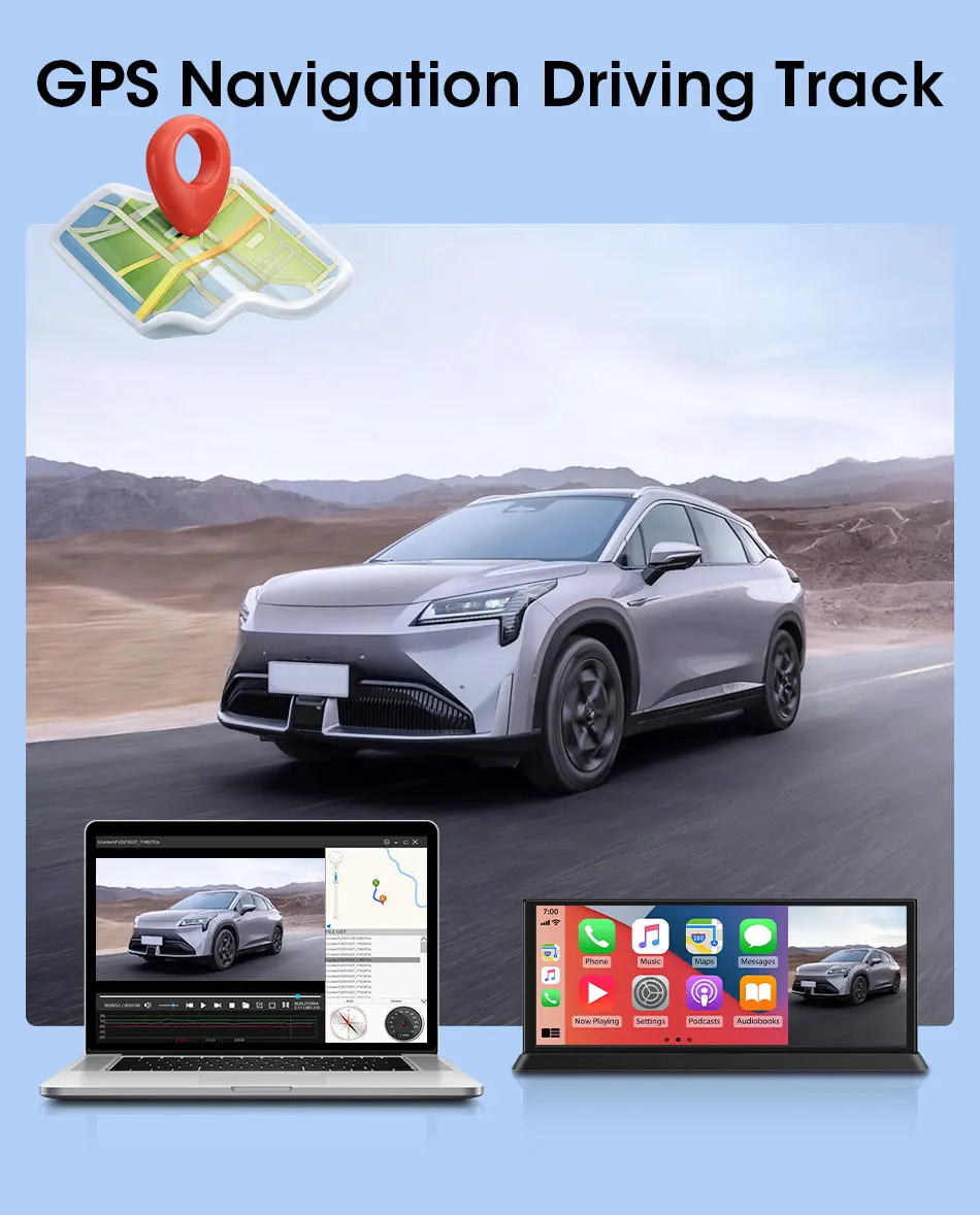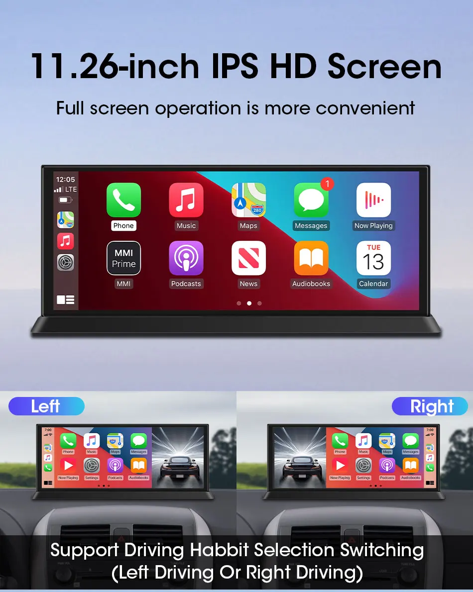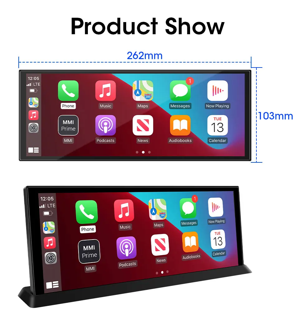 10.26″4K 64G TouchScreen Portable Wireless CarPlay Android Auto Truck Dash Car Stereo Bluetooth GPS Navi Reversing Wide-Angle FM
