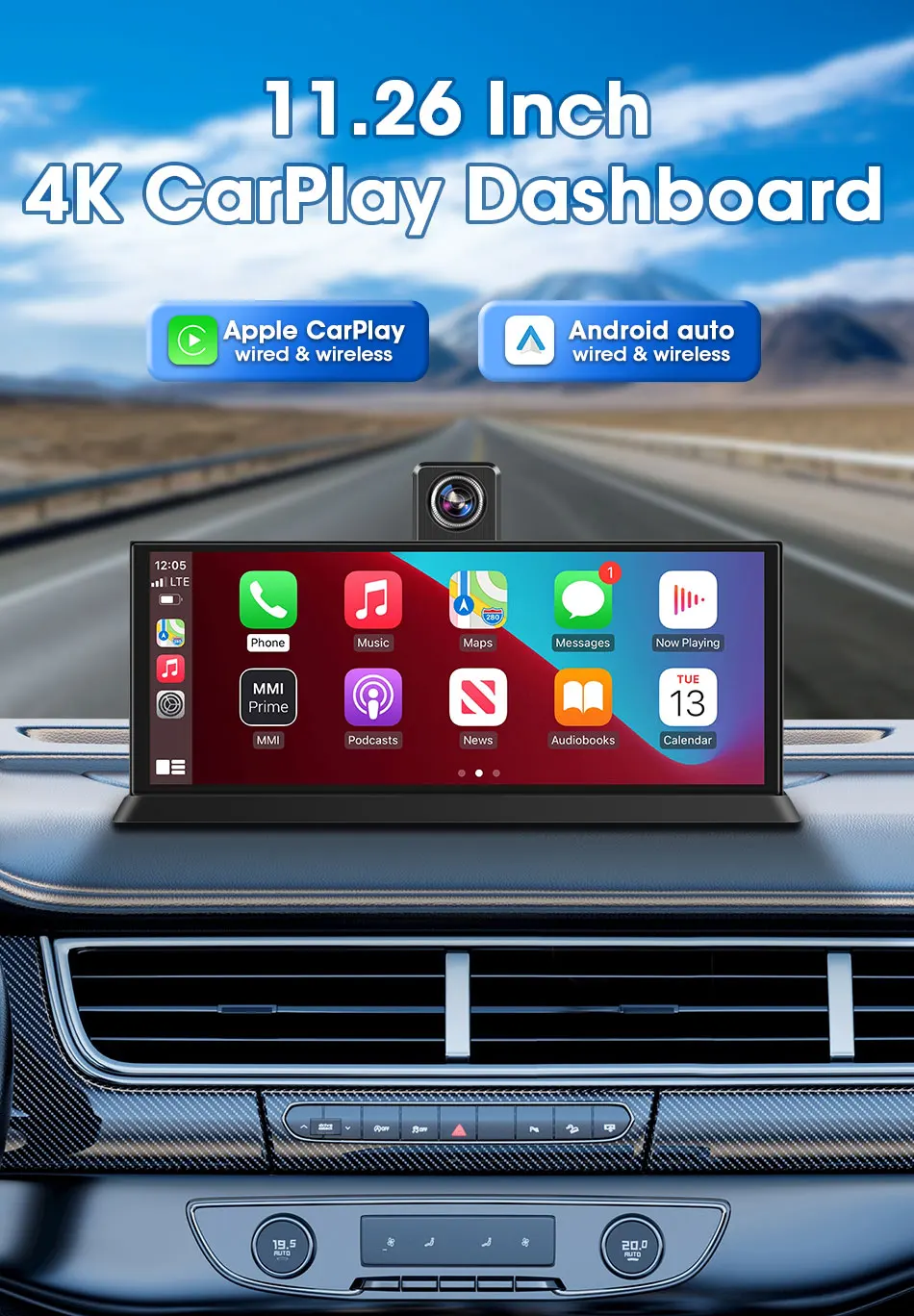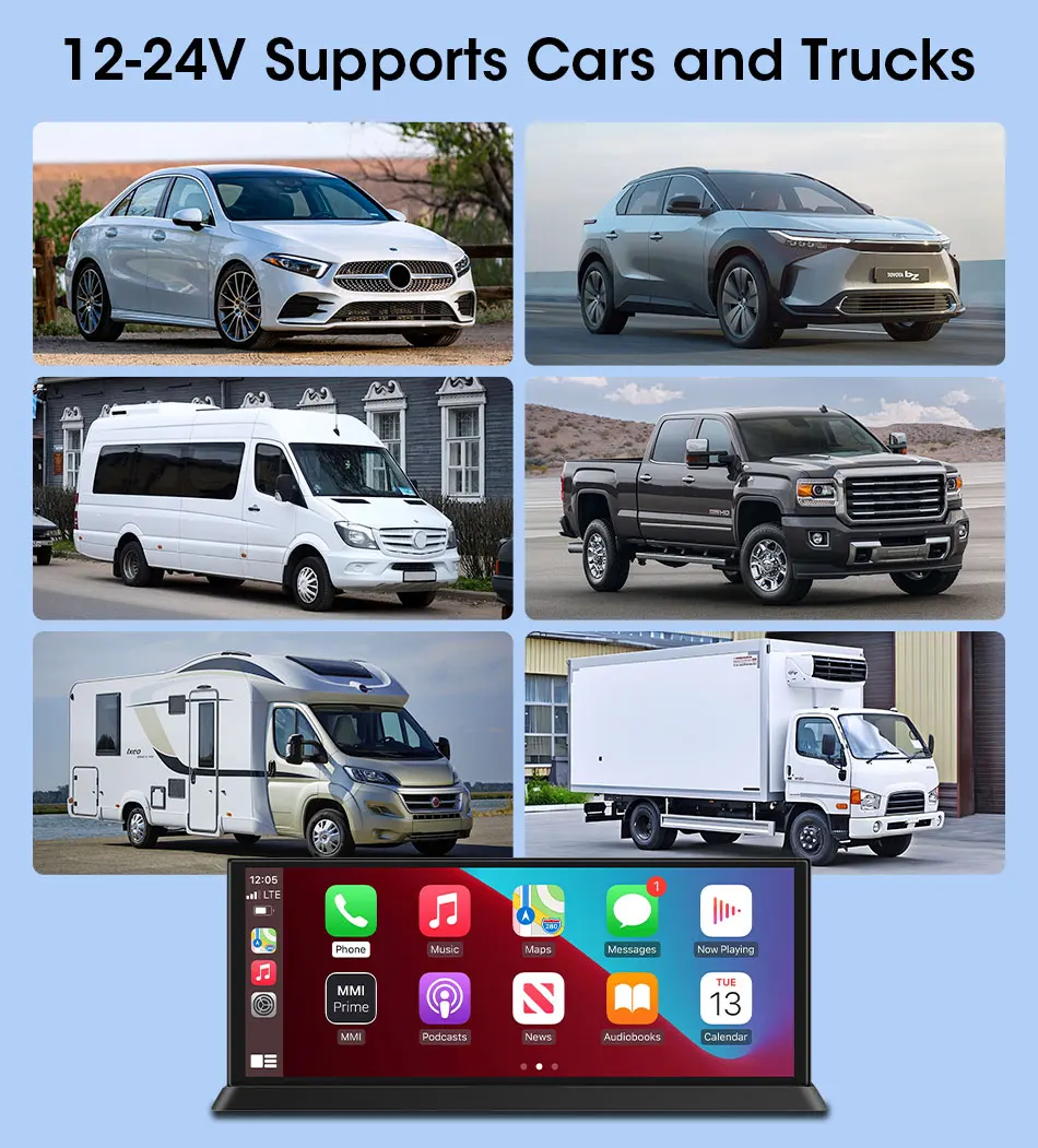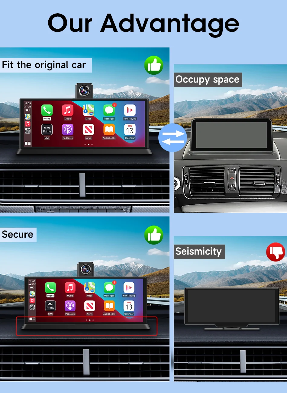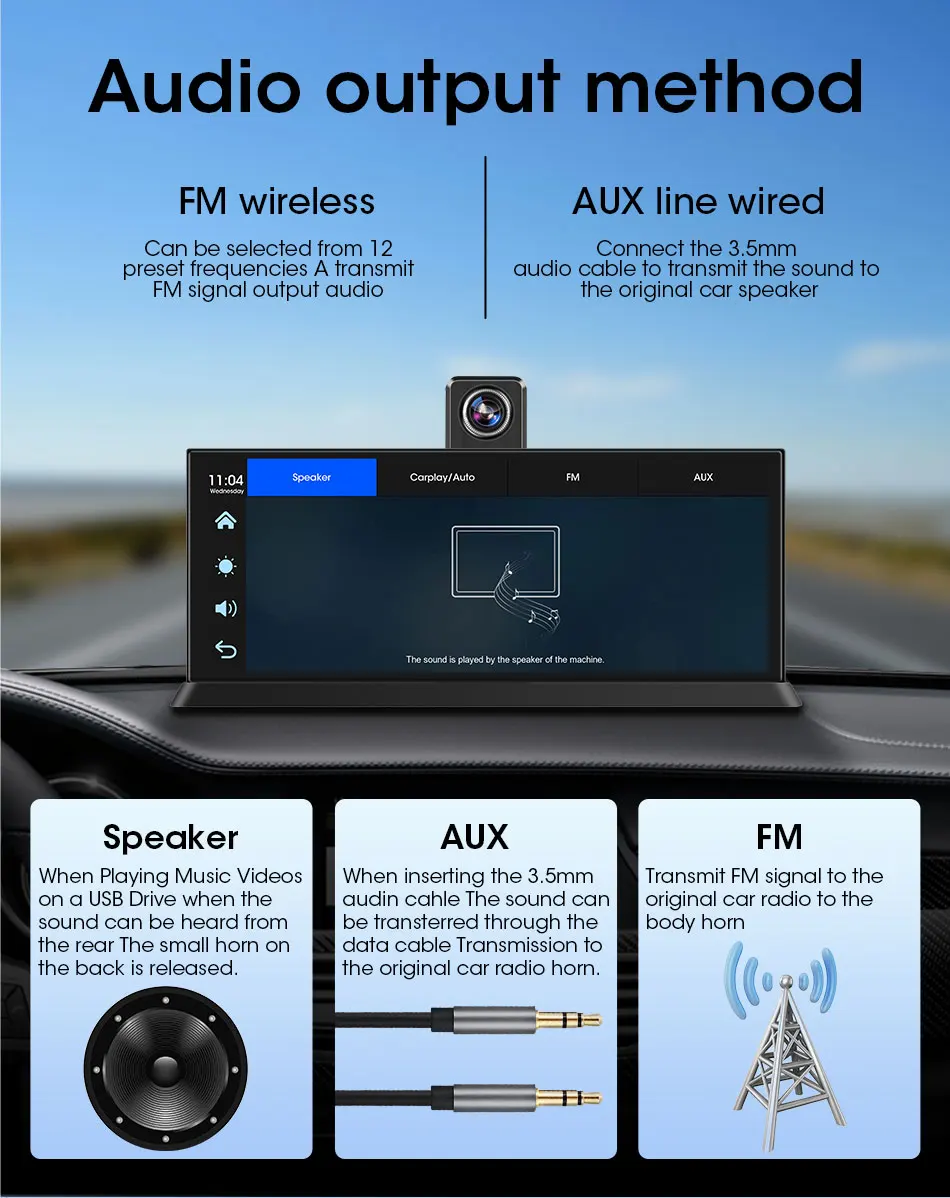 10.26″4K 64G TouchScreen Portable Wireless CarPlay Android Auto Truck Dash Car Stereo Bluetooth GPS Navi Reversing Wide-Angle FM