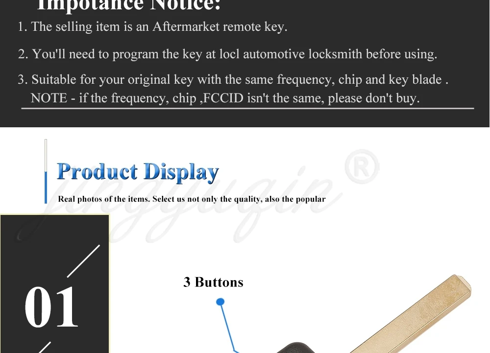 2. The image is of the real product. Please compare your Car Key, make sure your item is as same as our product before you purchase.