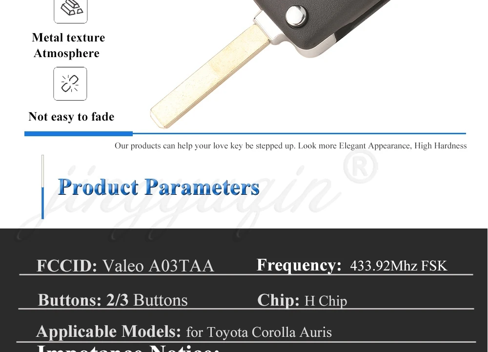 3. The key is suitable for your Original key Frequency 433.92mhz Chip H Key Only.