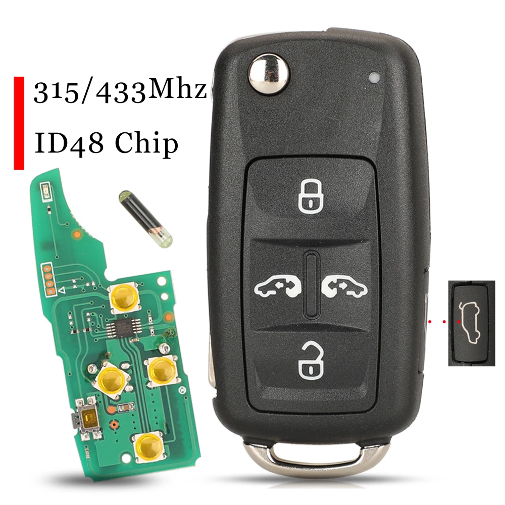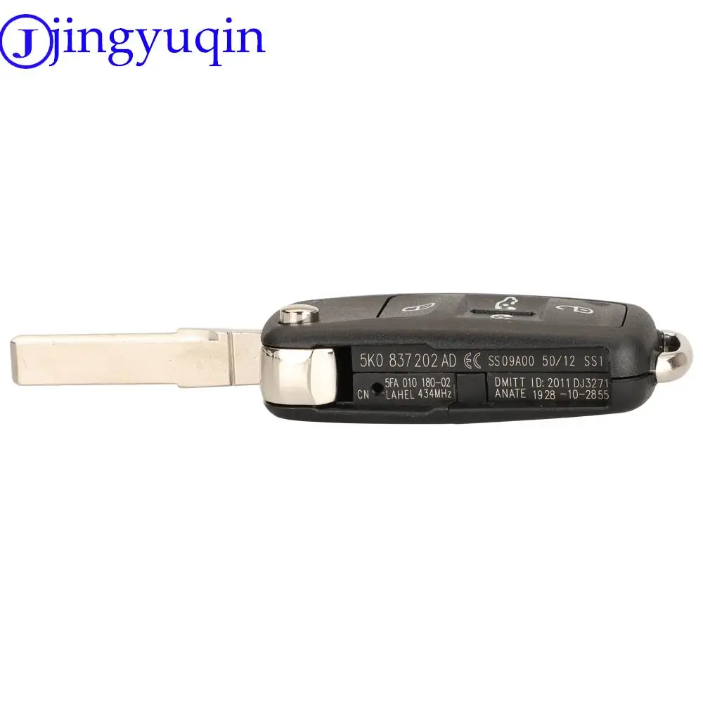 jingyuqin 5K0837202AD 315/434Mhz ID48 5Buttons Flip Key Fob For VW Sharan Multivan Caravelle Car Key Remote Control Replacement