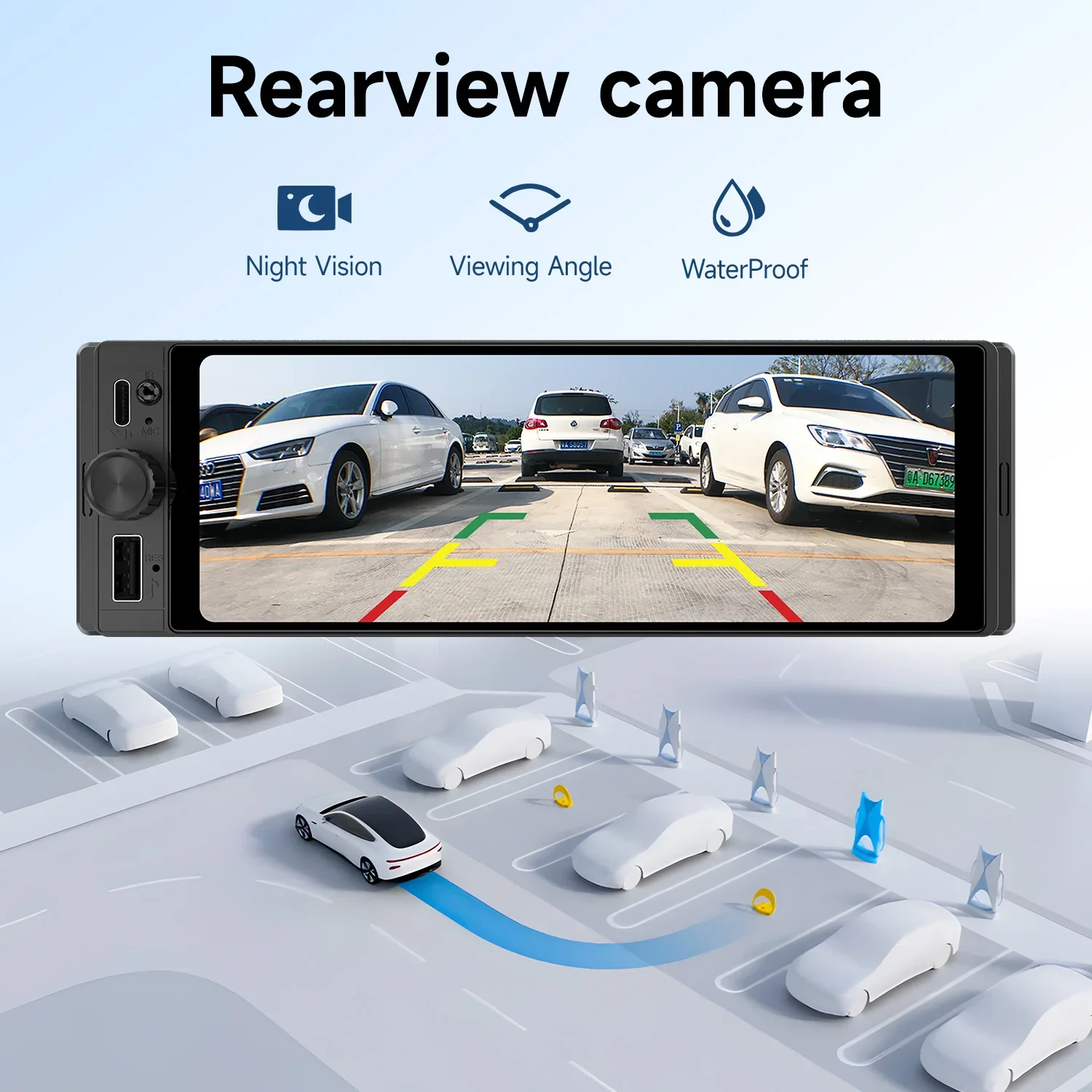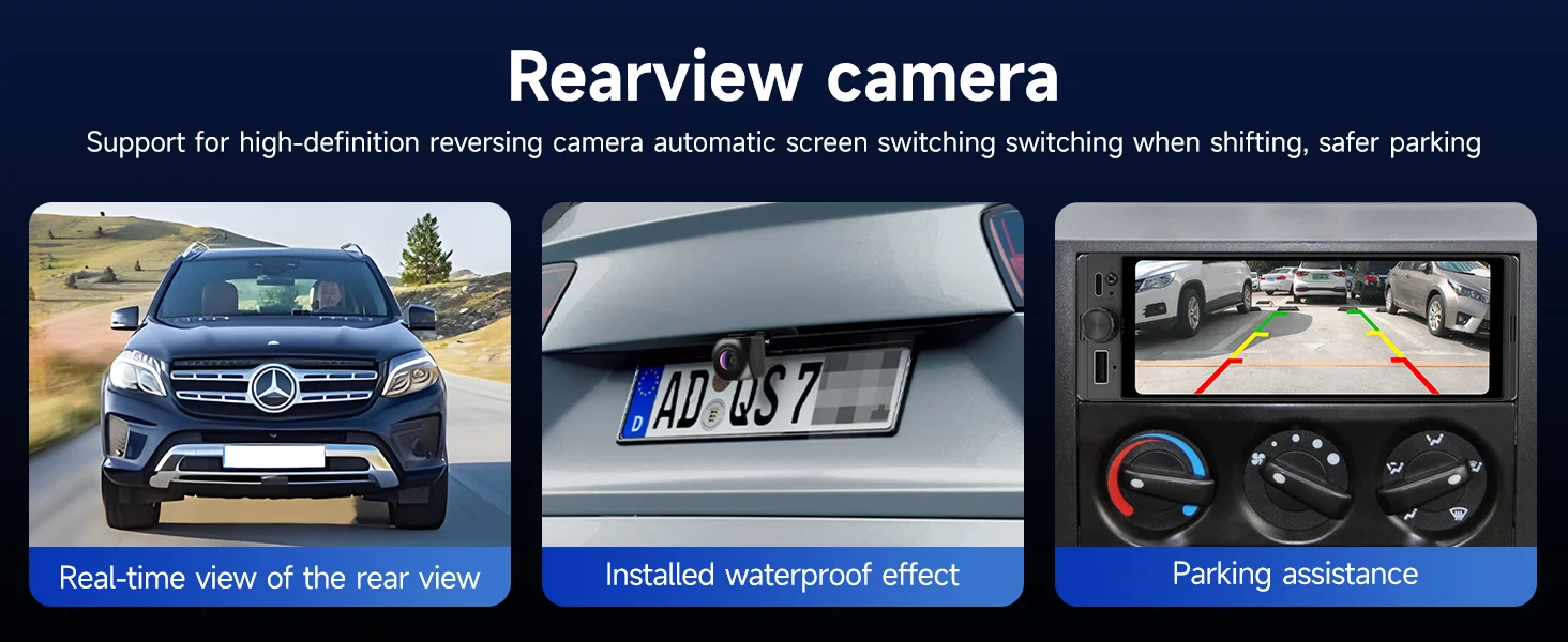 【Backup Camera 】The 1 din car media player with backup camera, the night vision, wide viewing angle of 170 degree and waterproof rear camera will capture the clear reversing image, when you put the rear gear in the car and the 6.28 inch car stereo will automatically switch to the reversing image.